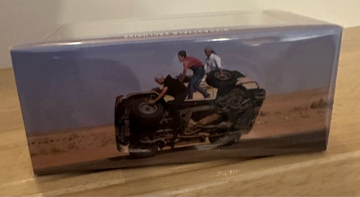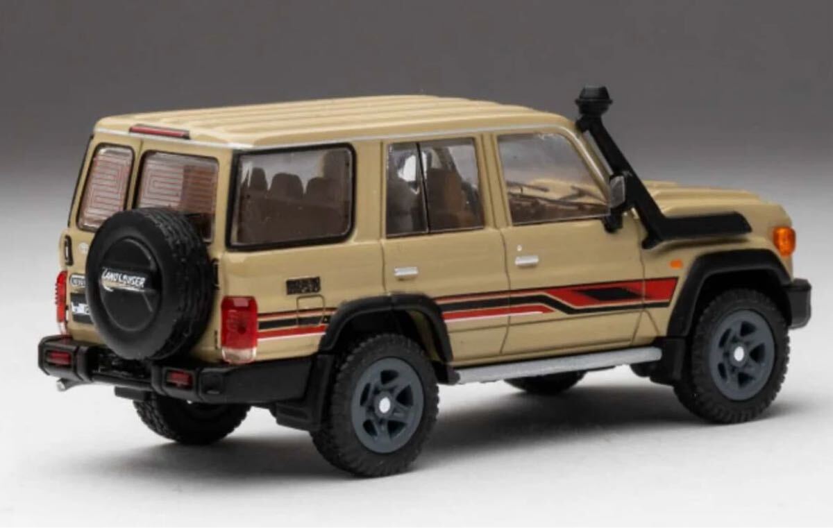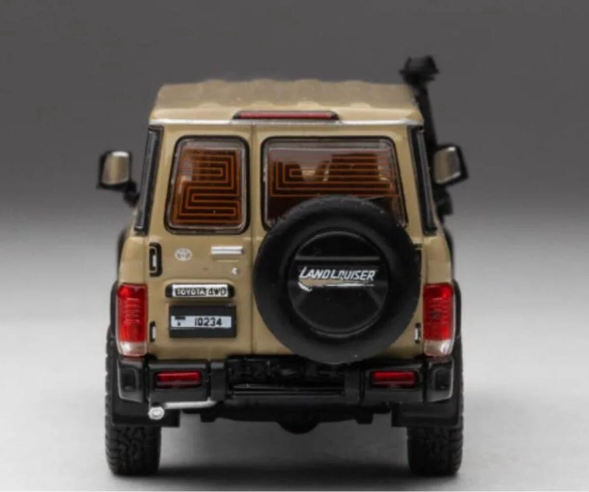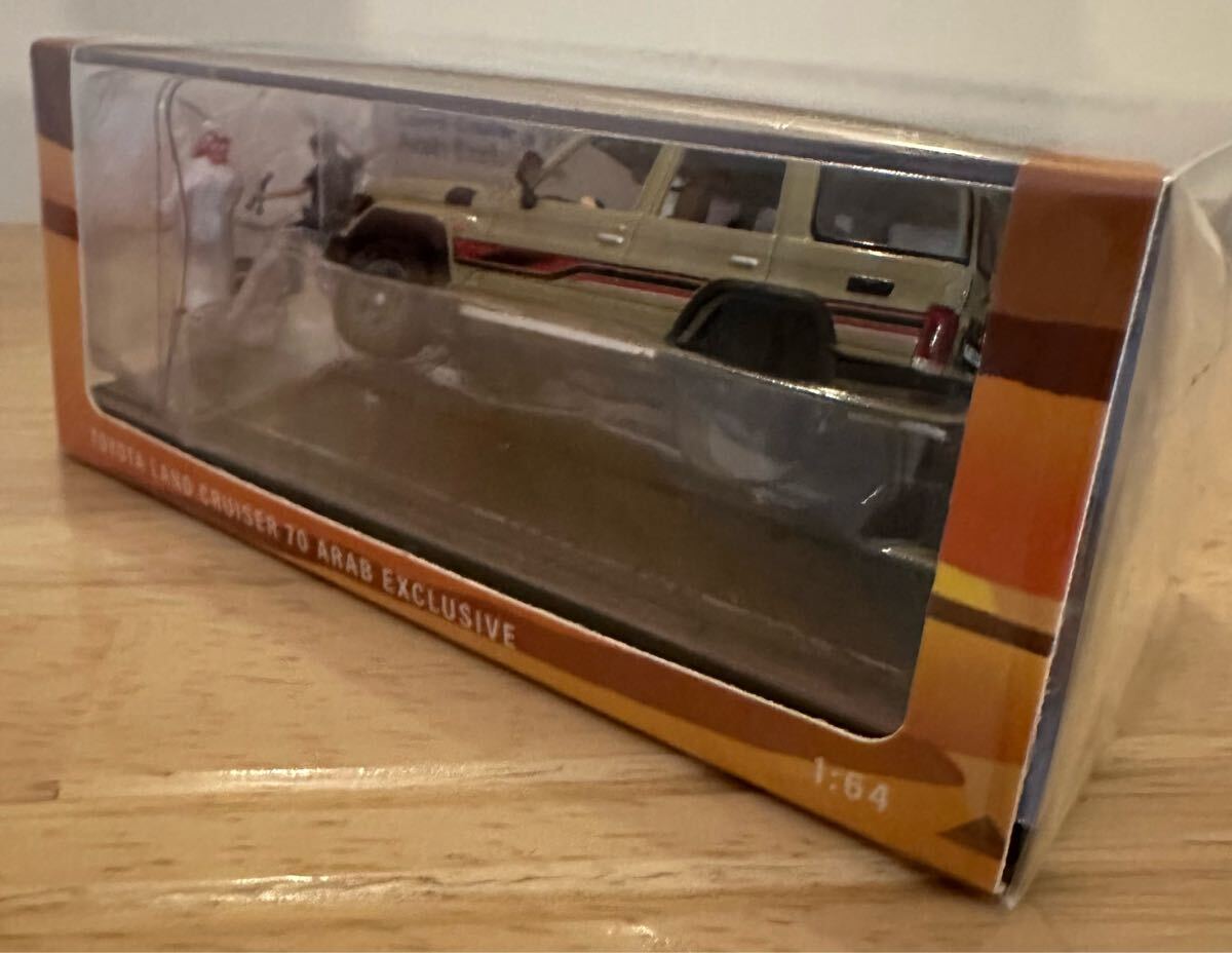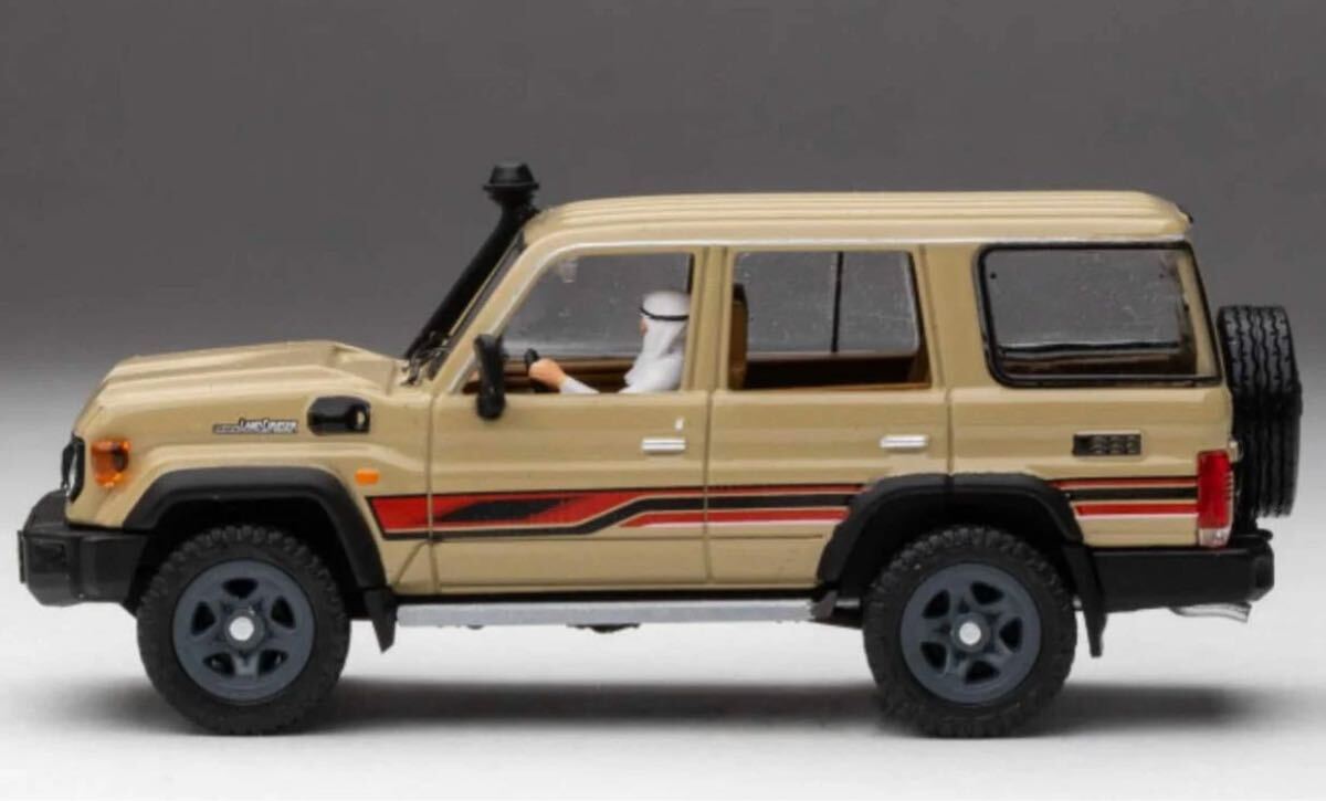 YouTubeやinstagramなどでおなじみの高速道路をランドクルーザー70を片輪走行しながらタイヤ交換する動画をミニカーにしたモデルになります。
