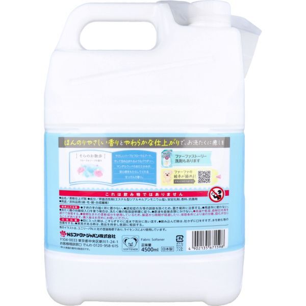 特大詰替用 洗たく回数120回分 ※水量30L・柔軟剤10mL使用の場合 ストーリー史上最高量の柔軟成分配合 ほんのりやさしい香りとやわらかな仕上がりでお洗たくに癒しを 植物由来の柔軟成分 静電気を防ぐ 大人と赤ちゃん両方の衣類に使える 部屋干しOK 48時間抗菌・防臭 ※すべての菌に効果があるわけではありません 省資源化やゴミの減量化になるボトルなので1/3の大きさに小さくたたんで捨てられます フローラルソープの香り 【商品詳細】 個装サイズ:209mmX299mmX131mm 個装重量:約4740g 内容量:4500mL 用途:衣料品用(綿・毛・絹・合成繊維) 成分:界面活性剤(エステル型ジアルキルアンモニウム塩)、安定化剤、香料、抗菌剤 製造国:日本 発売元:NSファーファ・ジャパン株式会社 JANコード:4902135671598 |