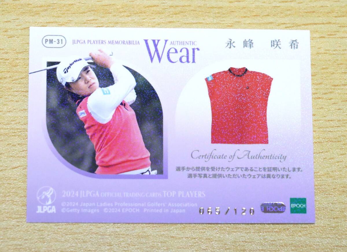 2024 JLPGA TOP PLAYERS 女子ゴルフ 永峰咲希 メモラビリアカードです。気に入って頂けた方の落札を心よりお待ちしております。発送は定形郵便又はレターパック又はゆうパケットポストで発送となります。大きさの都合上、定型郵便の場合は片面段ボール補強、レターパック又はゆうパケットポストの場合は両面段ボール補強もしくは片面段ボール補強+プチプチ梱包のどちらかにて発送致します。何卒宜しくお願い致します。
