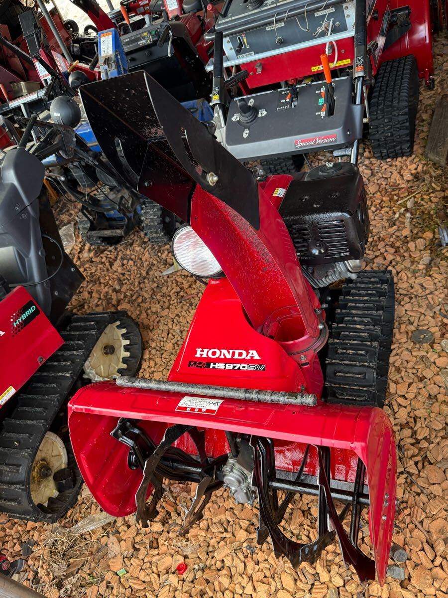 HONDA除雪機人気機種HS970SVオーガ上下ガスダンパーで調整!ガス漏れ無ししっかり効きます。下取り機械になりますので点検する際ハウジング内部廻り凹んでいる為パテで埋めて塗装しました。ブロワーファンの変形も戻しました。通常にご使用可能と思います。オーガに異物巻き込みセンサー付き!エンジンオイル、オーガギアケースオイル、ベアリング、ベルトなど全て新品に交換しました。クローラー多少皺有りますがまだまだ使える程度と思われます。バッテリーも良好です。エンジンセルで一発始動!外観は綺麗と見られますが現物確認におすすめします。中古機械になりますのでノークレーム、ノーリターンでお願い致します。超遠方の方は支店止めパレット発送も対応可能です。運送会社はご相談出来ますご必要でしたら是非よろしくお願い致します。直接お引き取りも大歓迎です。ご自宅玄関まで有料配送も対応致しますが送料は相談可能です。