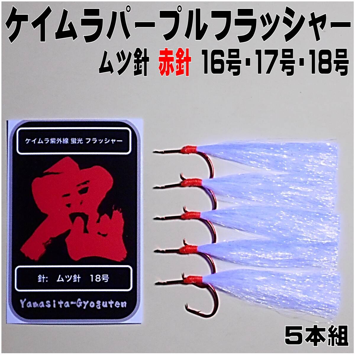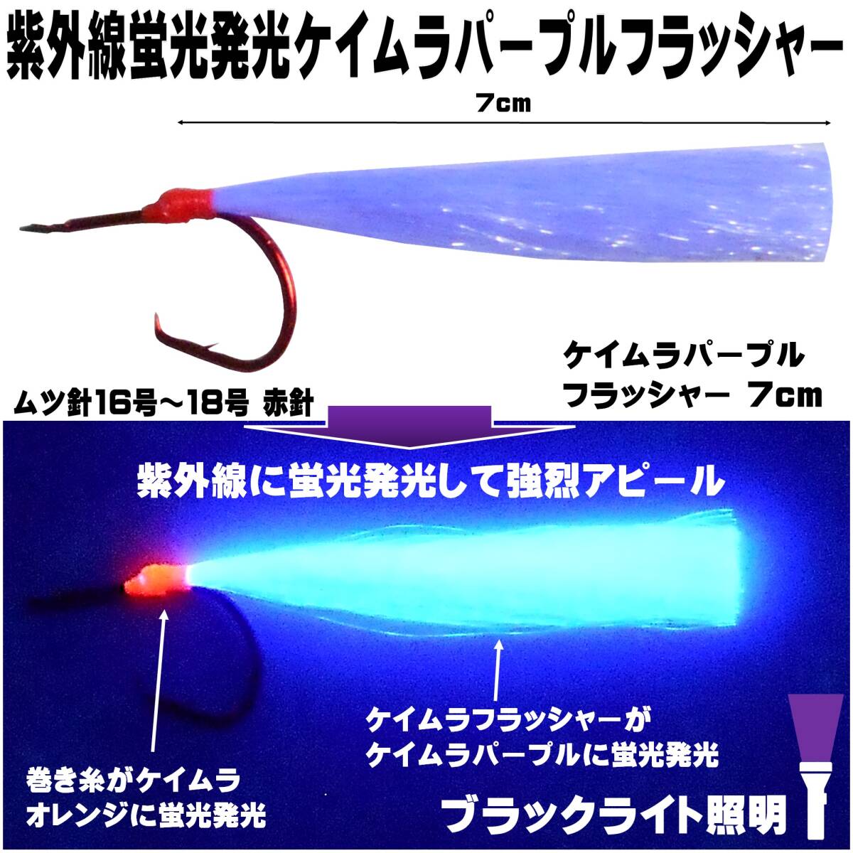 紫外線 蛍光発光 ケイムラパープルフラッシャー ムツ針16号・17号・ 18号 赤針 5本組
