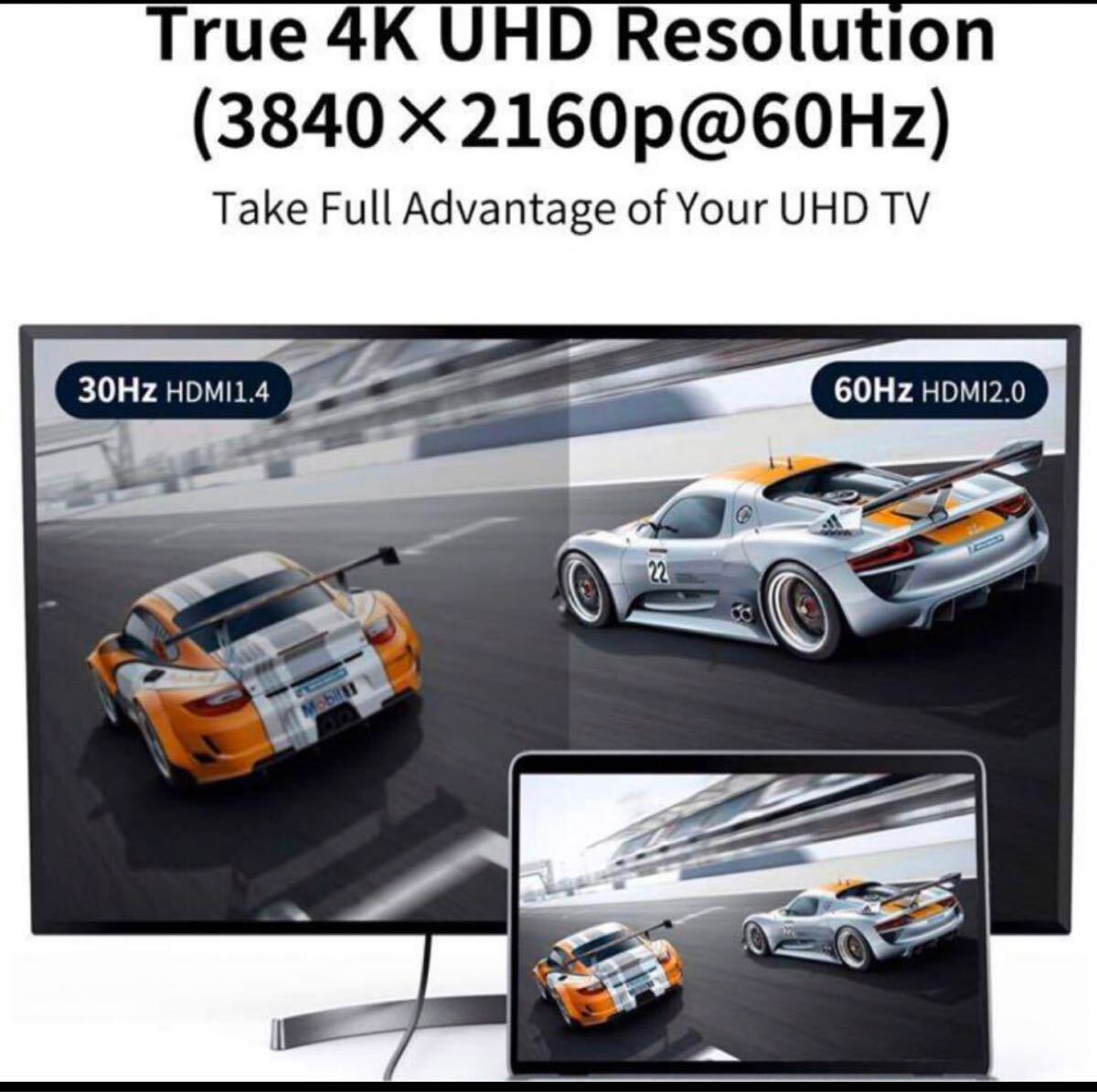【4K(3840*2160)@60Hz】Thunderbolt 3 HDMI USB-C , HDCP 2.2で、30Hzより、60Hzの方が画面の遅延なく、下位互換性備え4K@30Hz、1080p@60Hz、1080I、720p等解像度、HDMI1.4、HDMI1.3、HDMI1.2にも対応できるHDMI変換ケーブルです。