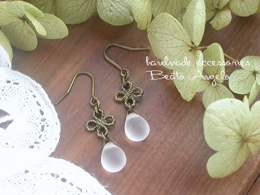 ◇◇+angelo+チェコドロップのプチピアス(p-131)クリスタルマット AG シンプル ホワイト 冬 ※在庫限り
