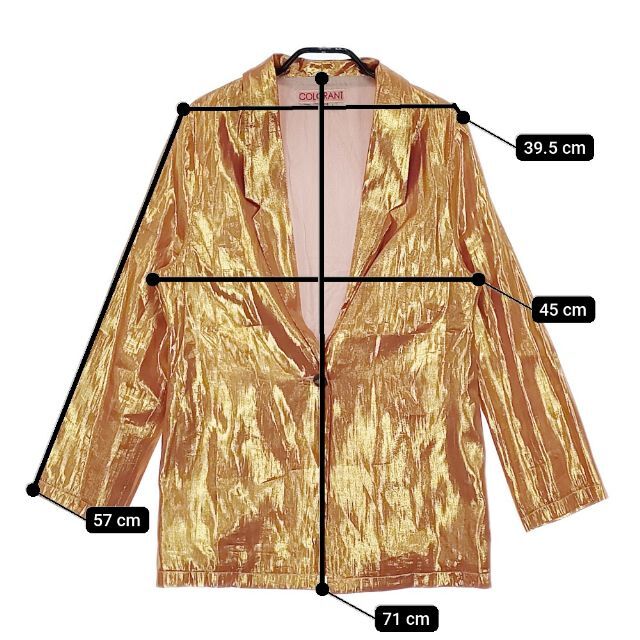 実寸サイズ | 肩幅:約39.5cm 着丈:約71cm 身幅:約45cm 袖丈:約57cm ※記載以外のサイズが合わないことを理由とした返品はできませんので、 記載部分以外で実寸サイズの気になる箇所があれば必ず購入前にご質問ください。 |