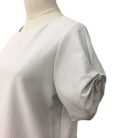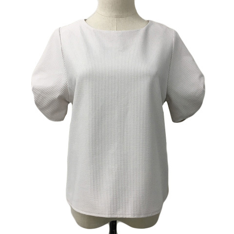 ロペピクニック ROPE Picnic カットソー プルオーバー ストライプ タック 半袖 38 白 ベージュ ホワイト レディース