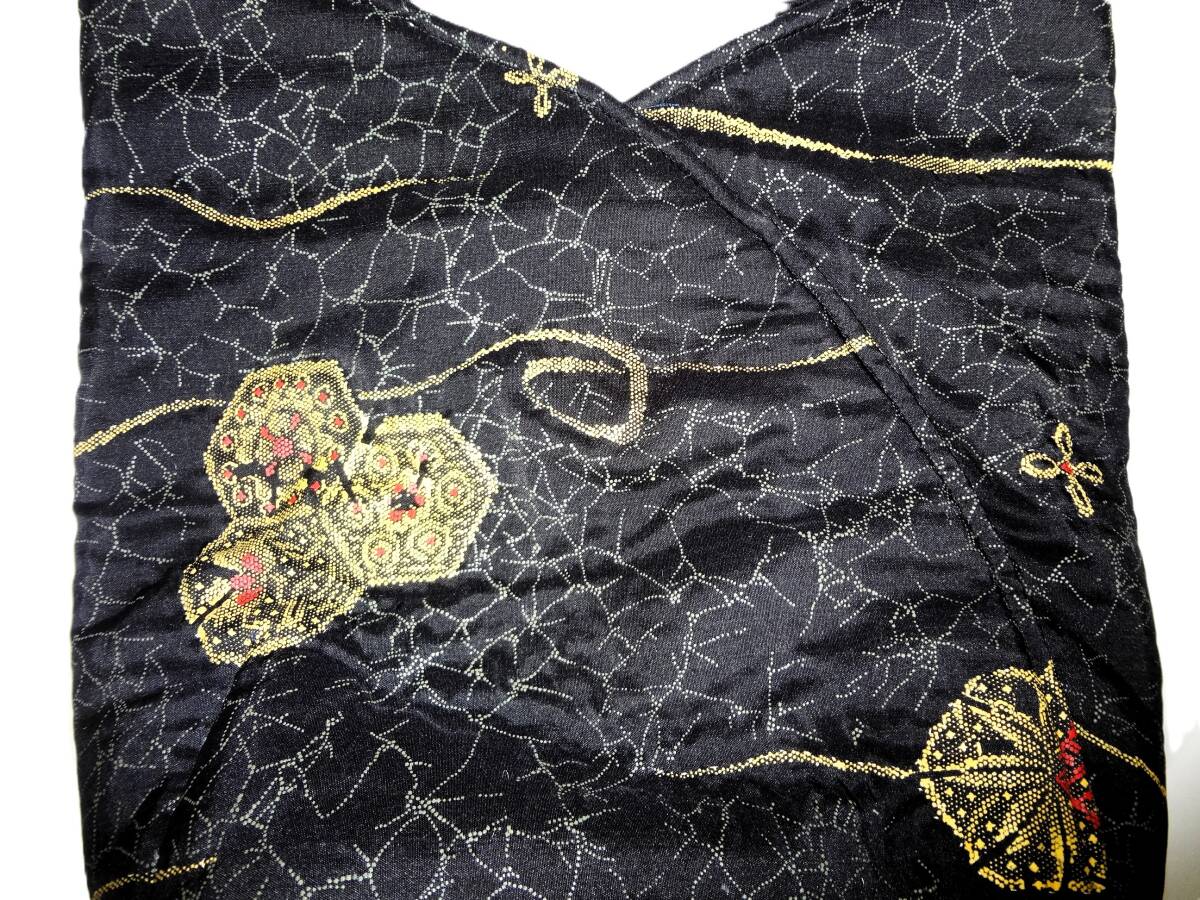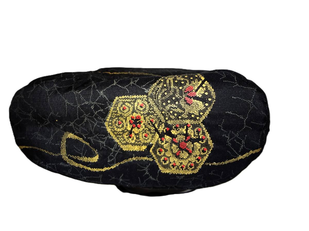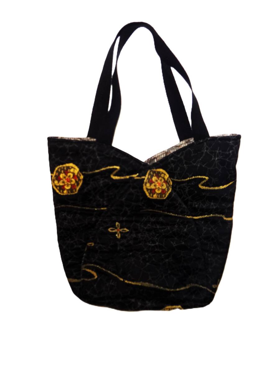 着物生地・黒地に刺繍が施された布製のバッグ