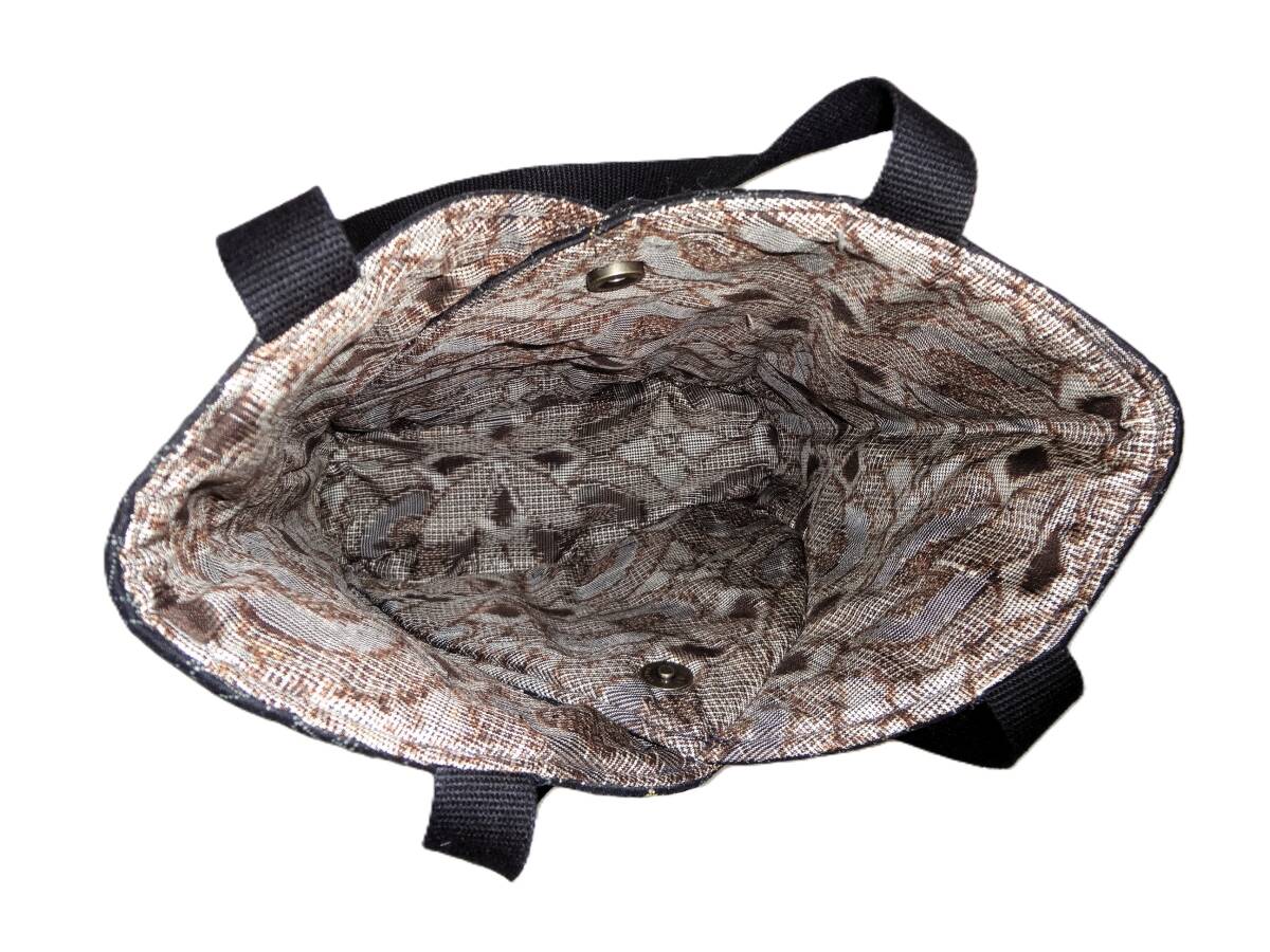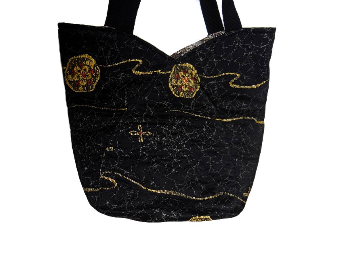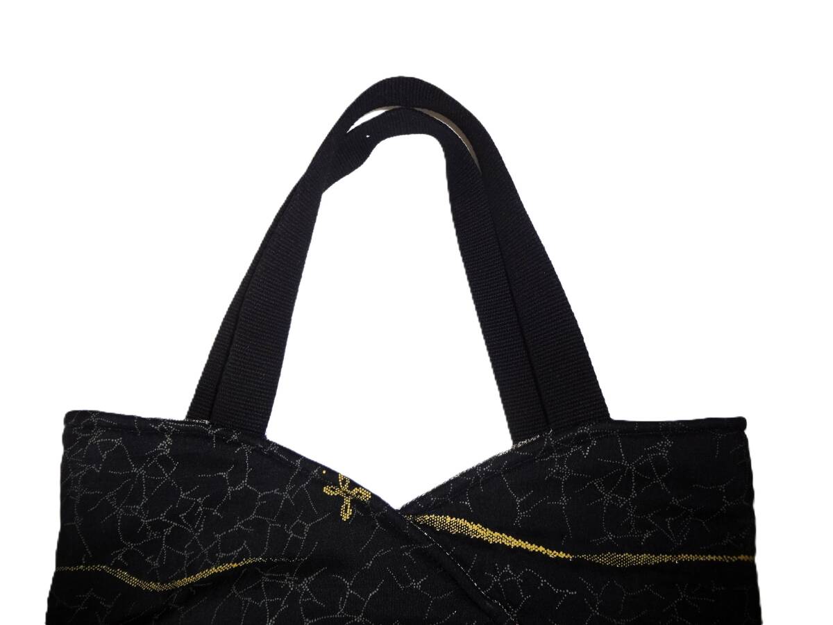 着物生地・黒地に刺繍が施された布製のバッグ