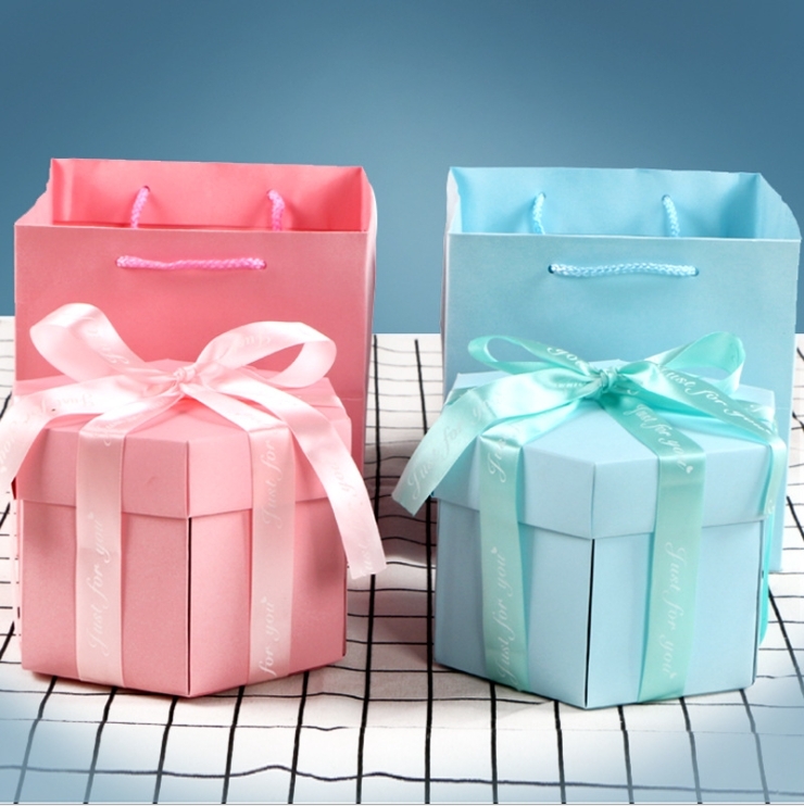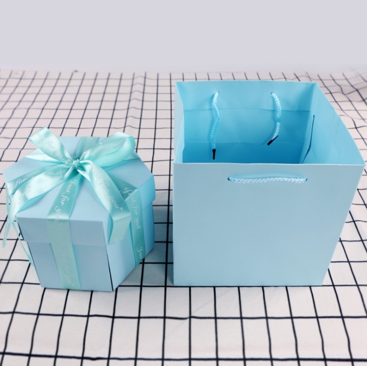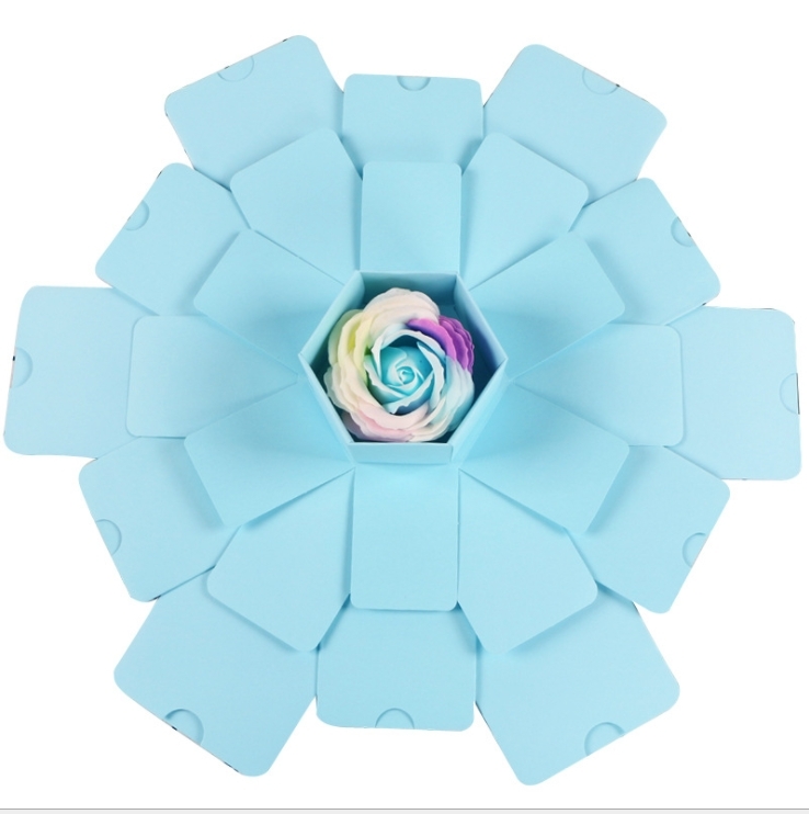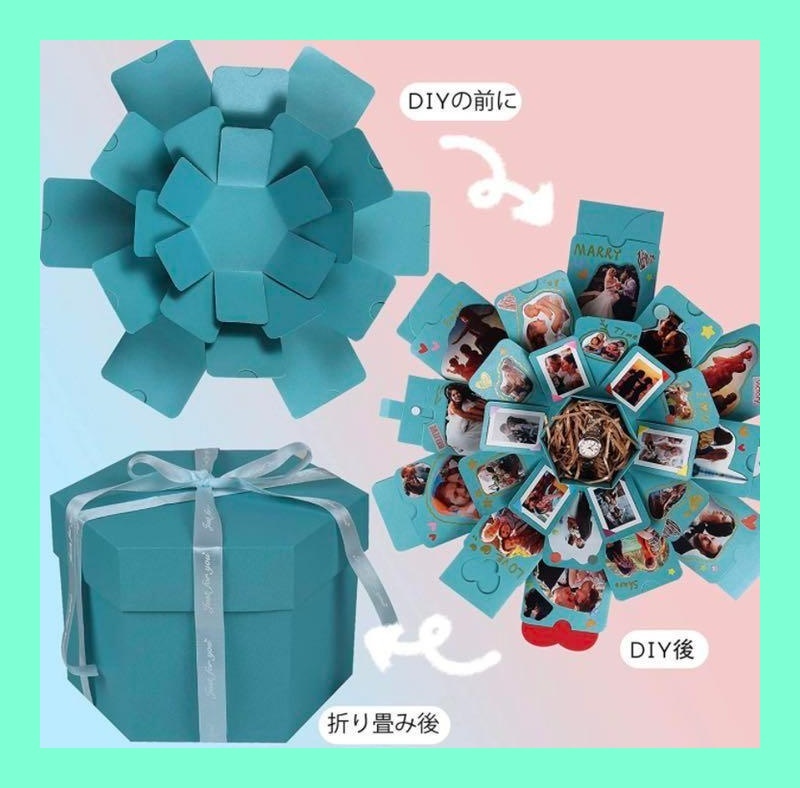サプライズボックス ギフトボックス 写真 メッセージ 組み立て簡単 ハンドメイド 誕生日 記念日 (ブルー)