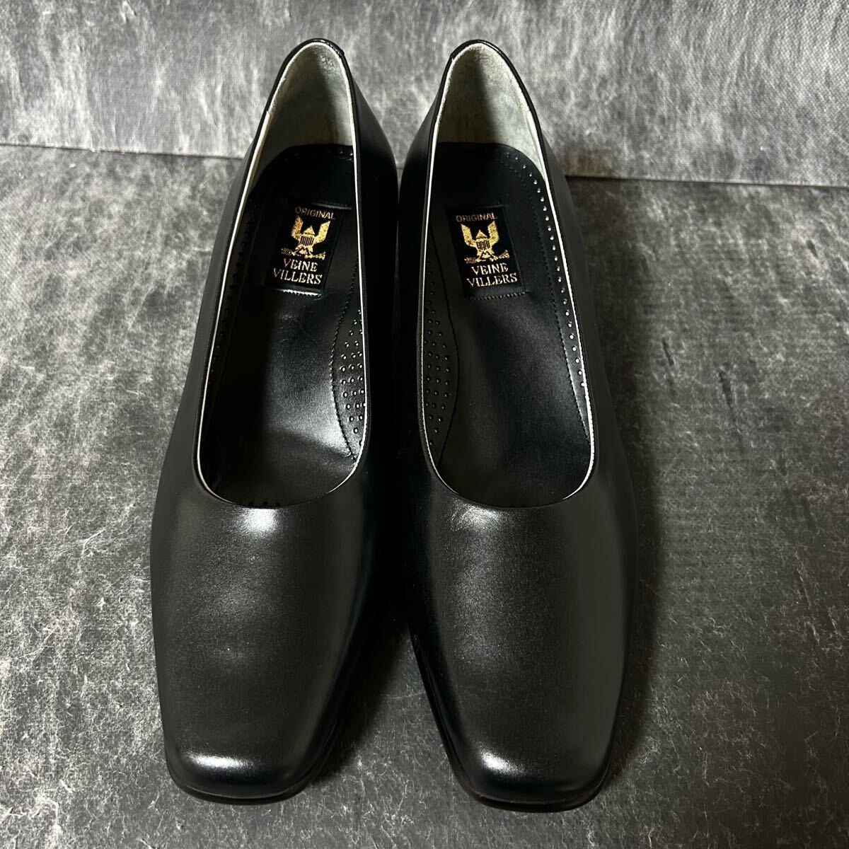 【未使用/大きいサイズ】 VEINE VILLERS ヴェイネビラーズ #3018 スクエアトゥパンプス 本革 ブラック レディース size251/2 EEE *3A