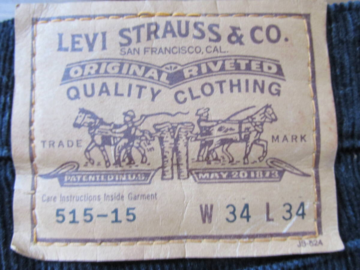 770-90♂:LEVI'S リーバイス  Vintage コーデュロイパンツ 515-15 Jo364-C size.34×34 色.黒 フライ釦NO.J38 1995年5月