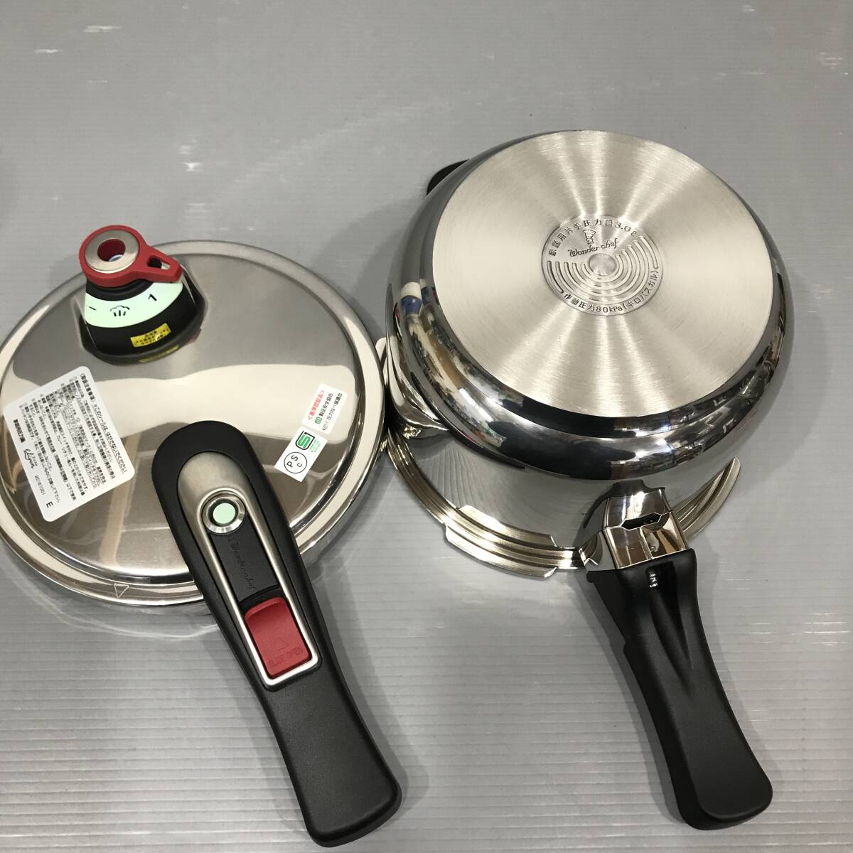 総合リサイクルショップ ファインドプレイスです。 当店の出品をご覧いただき、ありがとうございます。 自己紹介に当店のオークション対応(臨時休業日など含む)を記載しておりますので、入札前に必ずご確認ください。 → ファインドプレイス自己紹介 ← 送料は文末に一覧で表記しております。 発送方法は複数ございますので、入札前に必ずご確認ください。 ■商品詳細■ 【メーカー】 ワンンダーシェフ 【商品名/型式】 家庭用片手圧力鍋 エリユム 3.0L YCSA30E 【サイズ】 幅約 38.5㎝、高さ約 17.5㎝、口径約 18㎝ 重量 約 1854g 【商品状態/動作確認】 未使用品です。 個人宅での保管品です。 細かな状態を気になさる方は入札をお控え下さい。 ※画像はご覧になるモニター環境で違いが出てしまうため、実際の色とは若干異なる場合があります。 【総合リサイクル ファインドプレイス】 所在地 北海道札幌市豊平区福住1条5丁目1-8 山田ビルA1階 電話番号 011-854-8024 営業時間 10:00-18:00 定休日水曜 古物商許可証 101290000984号 | |||