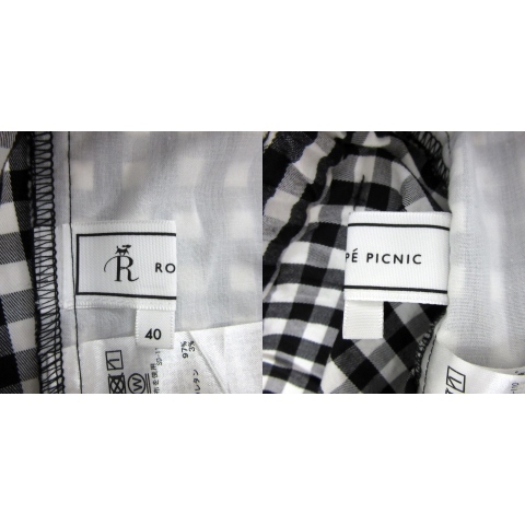 ロペピクニック ROPE Picnic テーパードパンツ アンクル丈 ギンガムチェック柄 ロールアップ 40 L 黒 ブラック 白 ホワイト レディース
