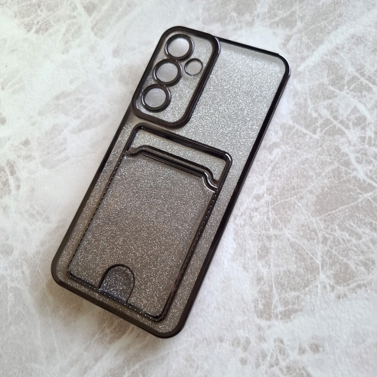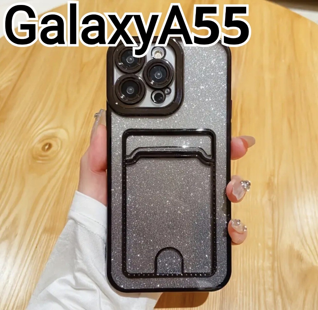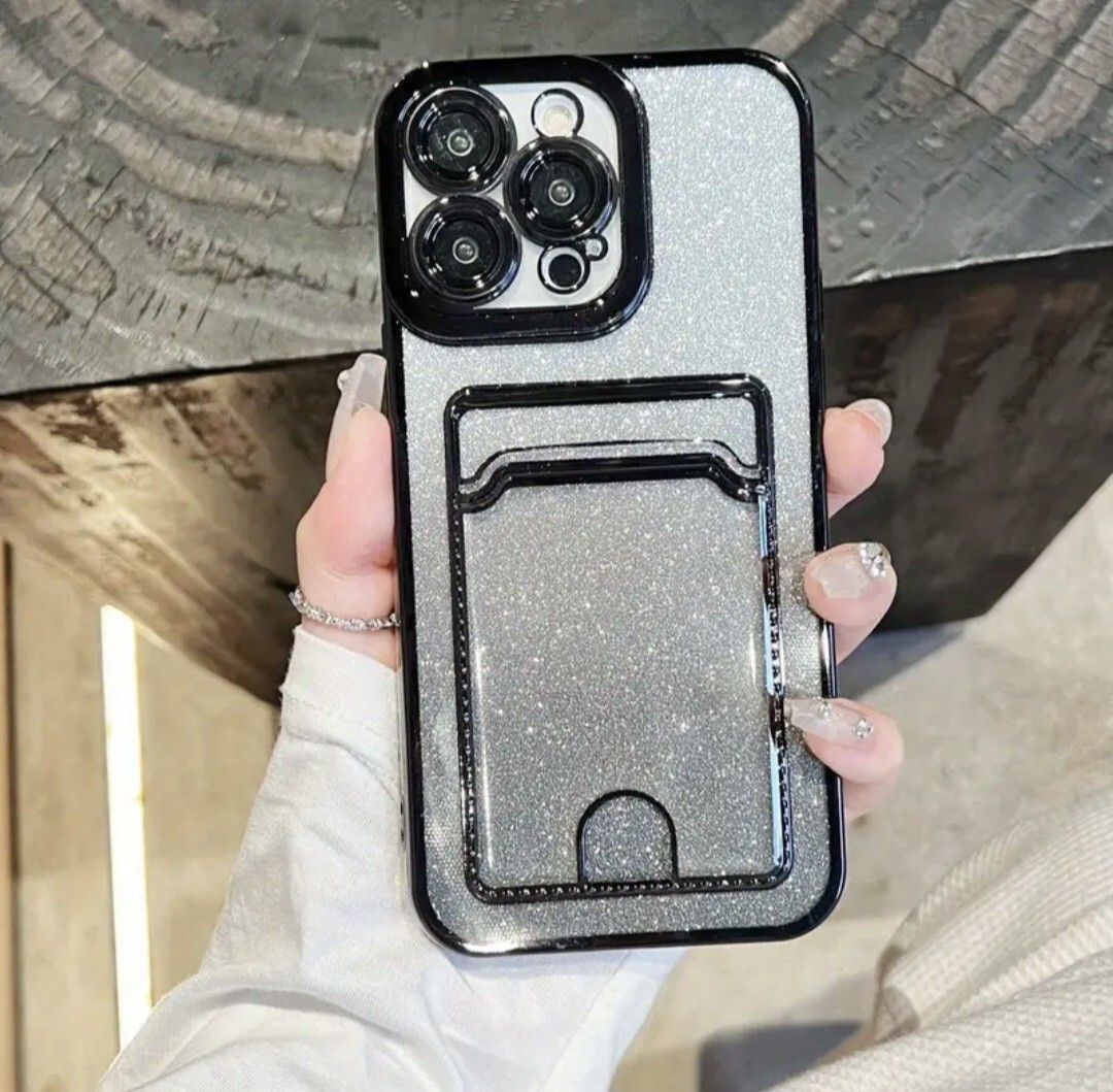 ふちどり メタリック 黒 クリア カードケース ラメ