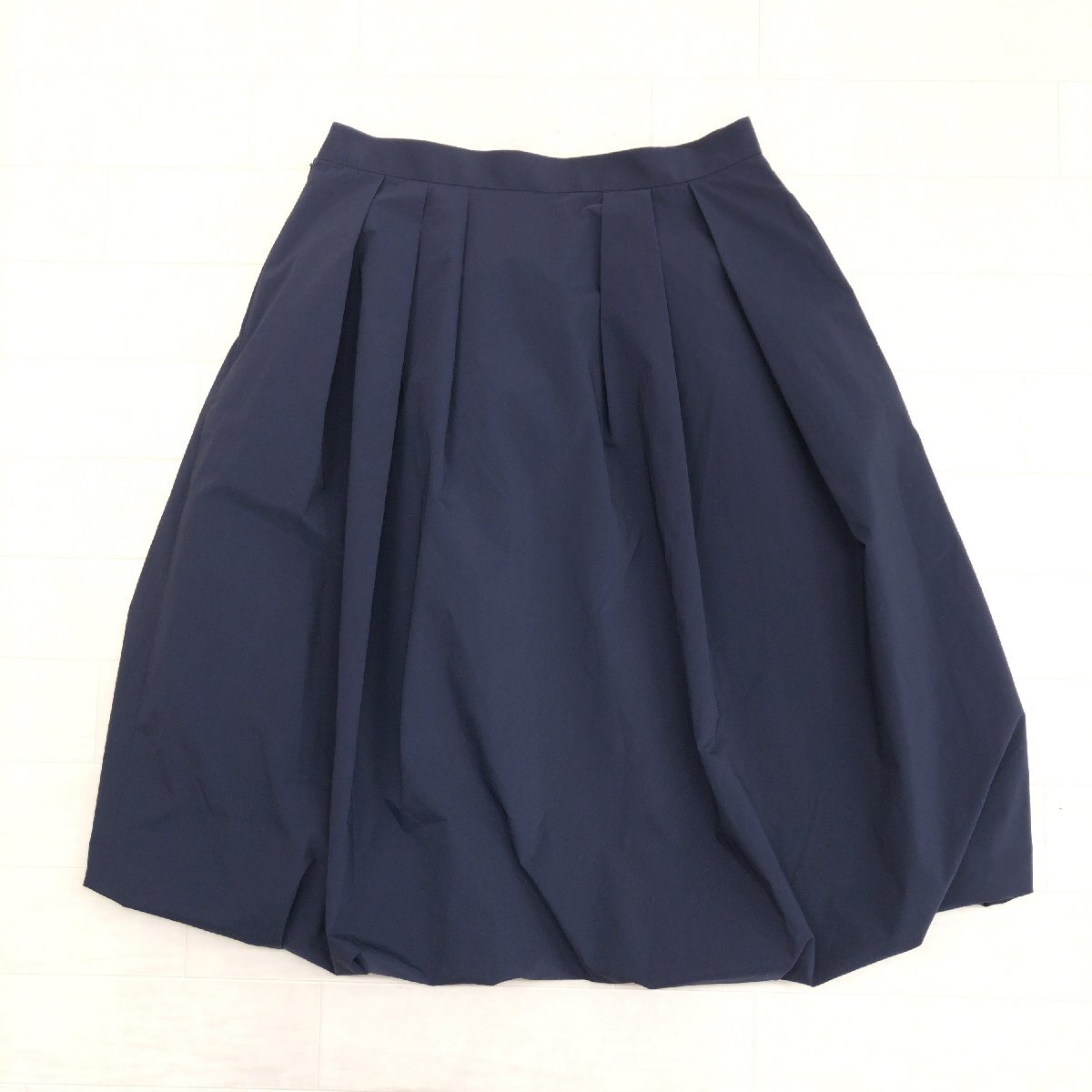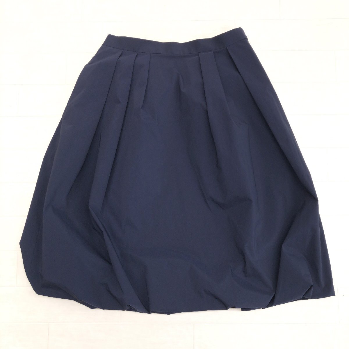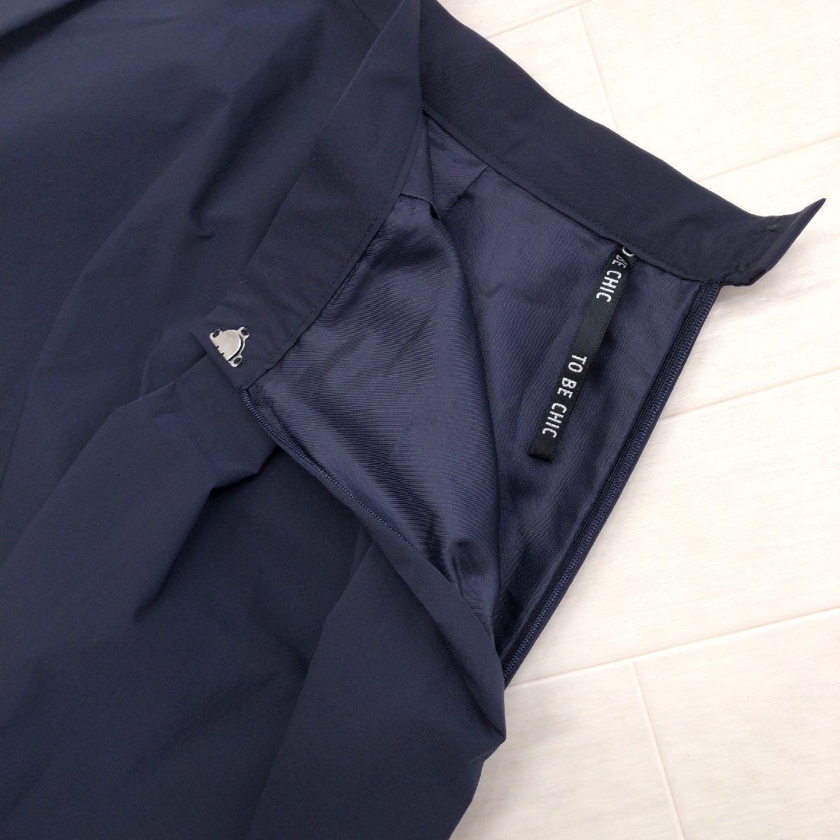 美品 TO BE CHIC トゥービーシック タック バルーンスカート 40(L) w62 濃紺 ネイビー 日本製 ミディ丈 フレアスカート レディース 女性用
