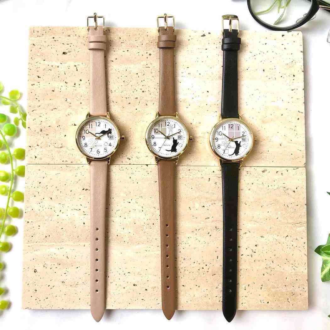 ニャカレ 腕時計 カレンダーウォッチ BK フィールドワーク ギフト プレゼント かわいい カジュアル グッズ