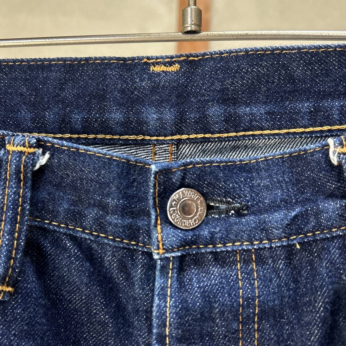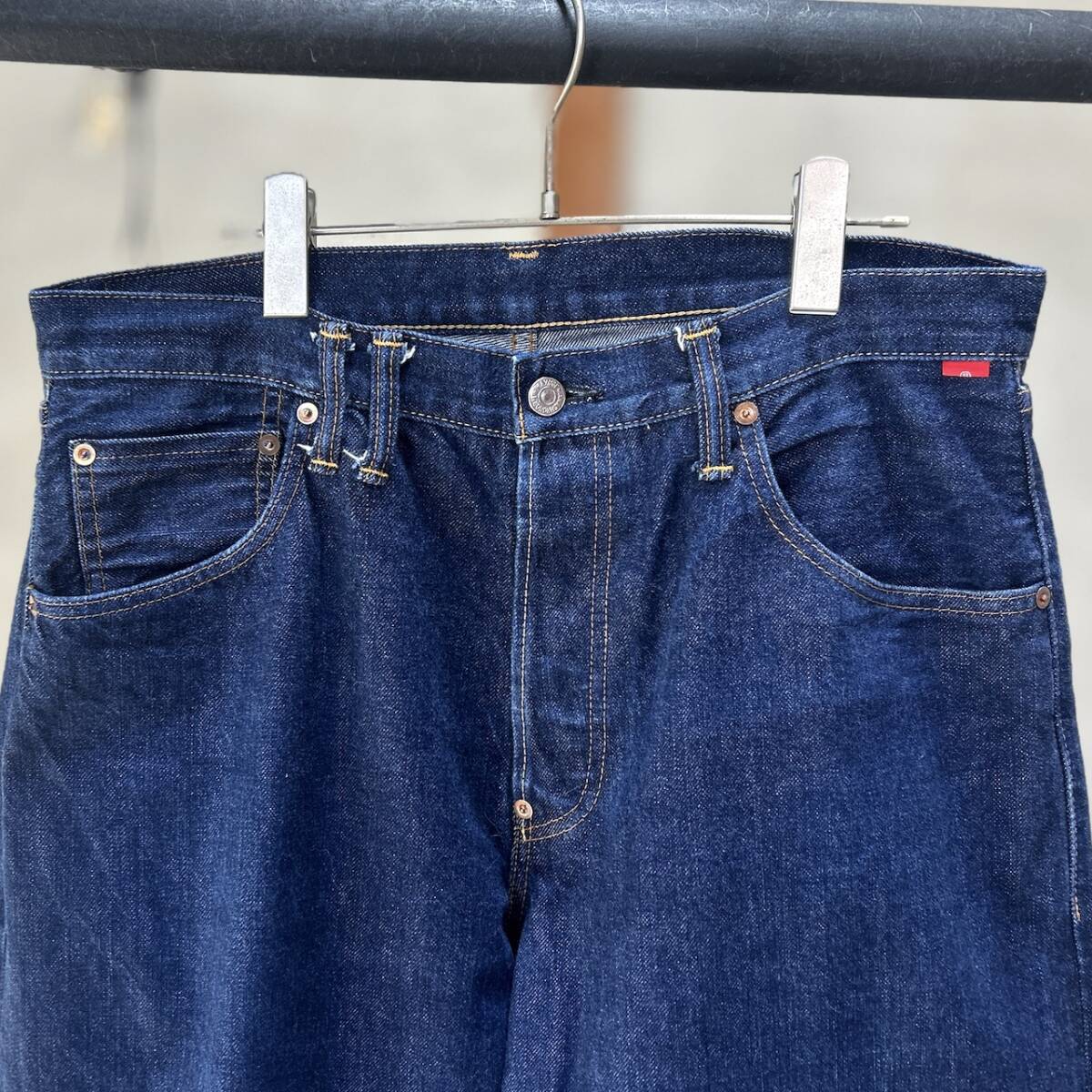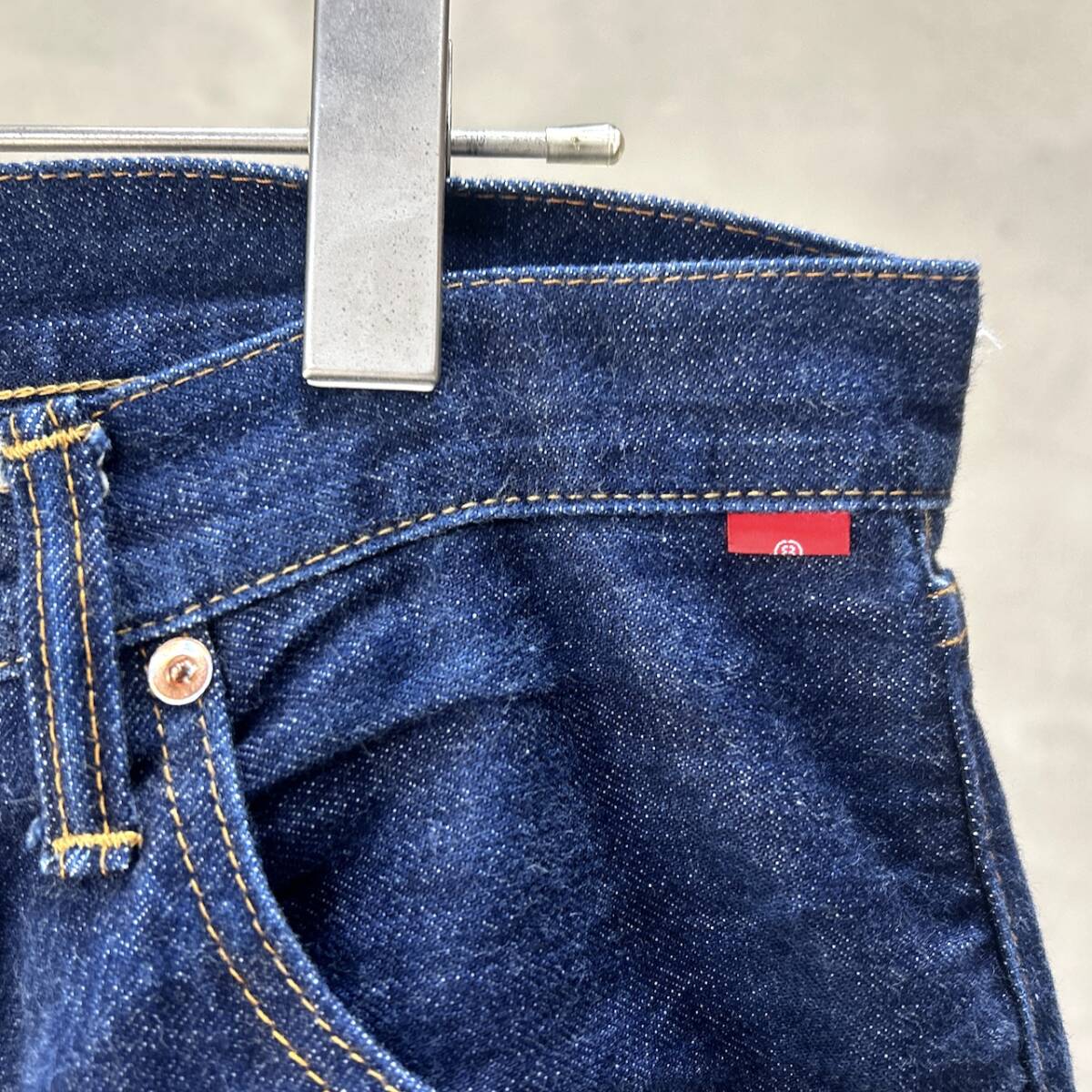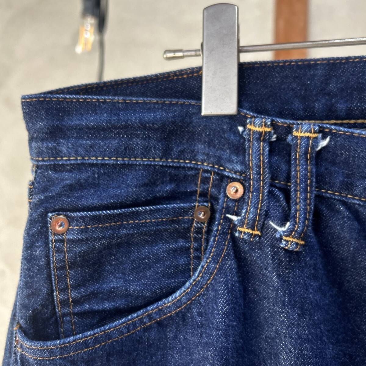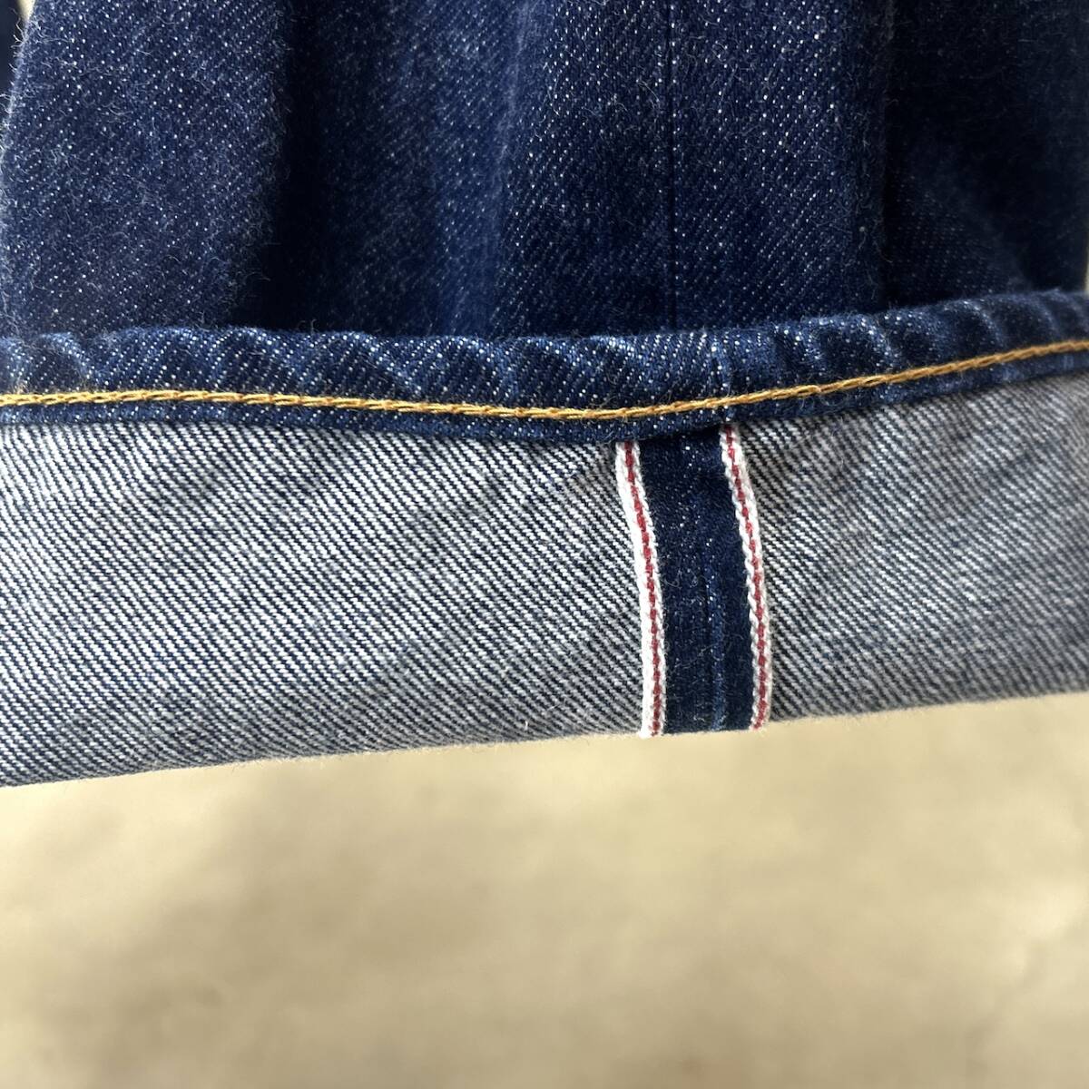セルビッチ赤耳で、裾はオリジナルチェーンステッチです。 USEDなので汚れ、ダメージ等ございますが、まだまだご着用頂けますのでおススメです^^
