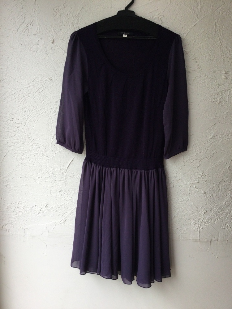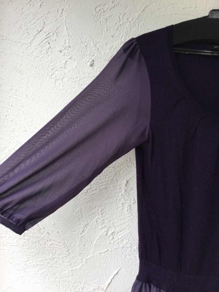 | 管理番号:40^129276 ミッシェルクラン 紫ワンピース 異素材切り替え 表示サイズ:38 実寸(参考)