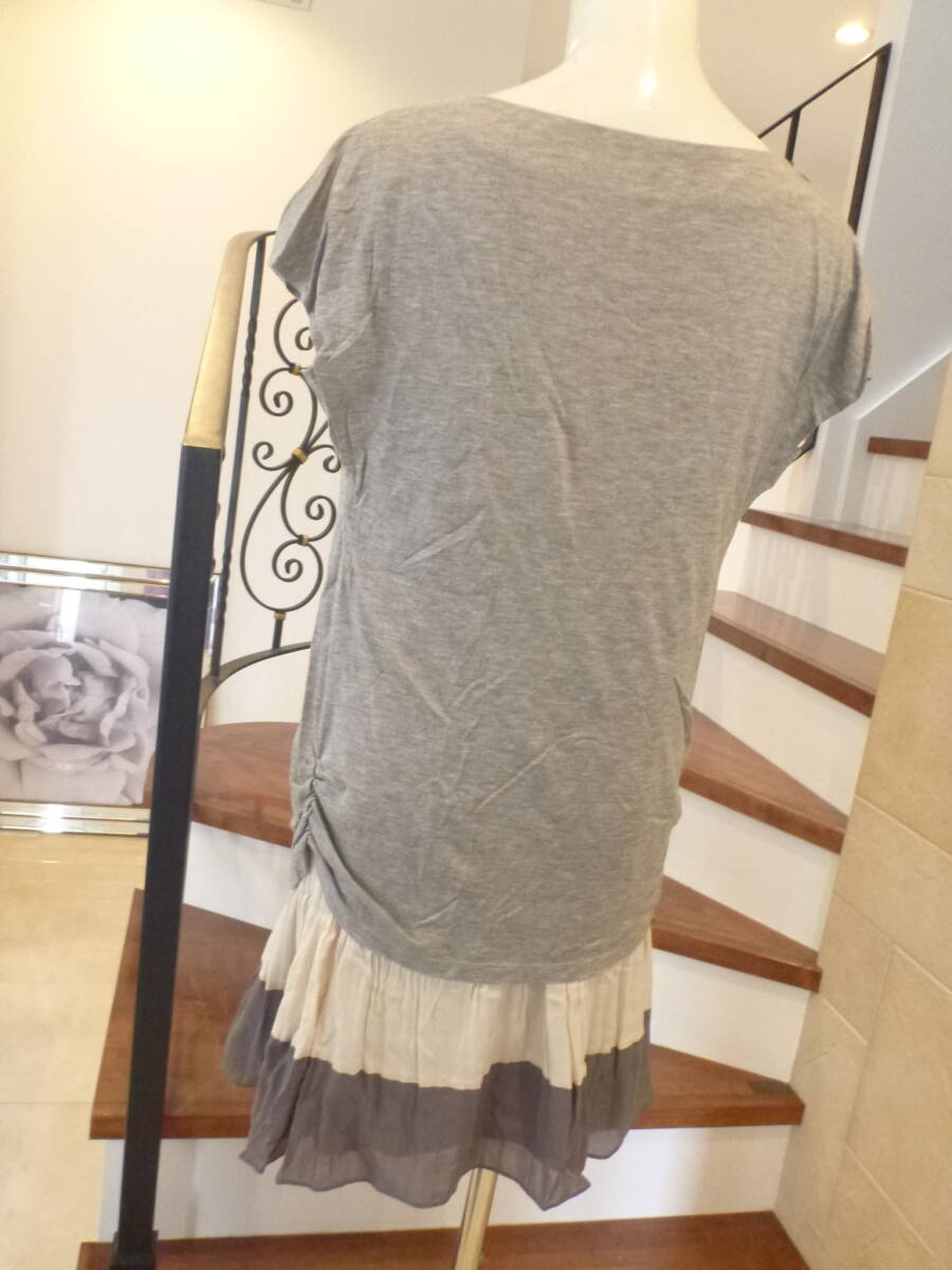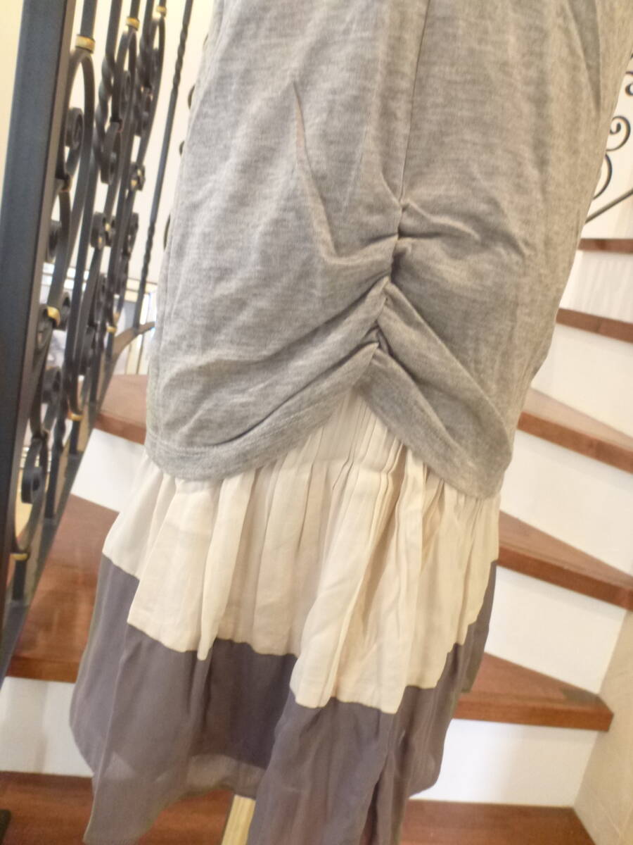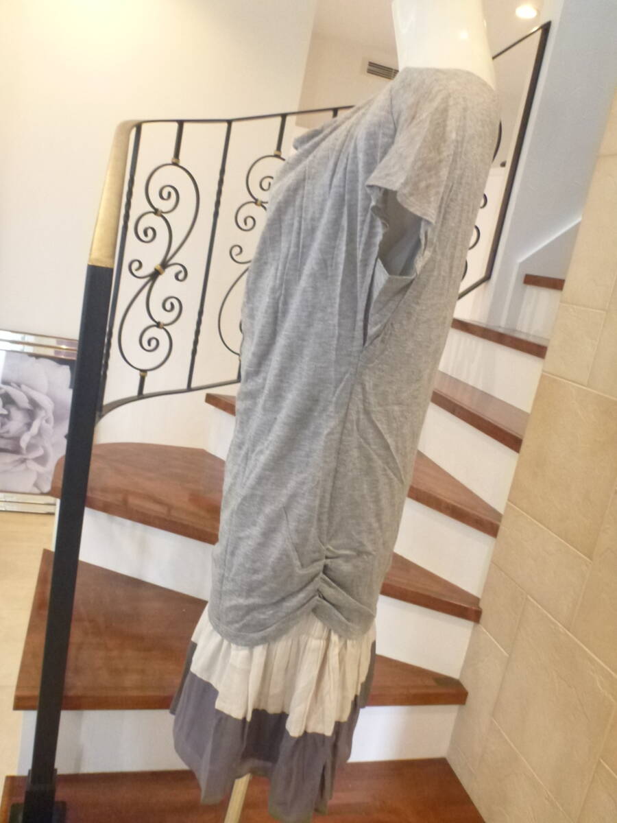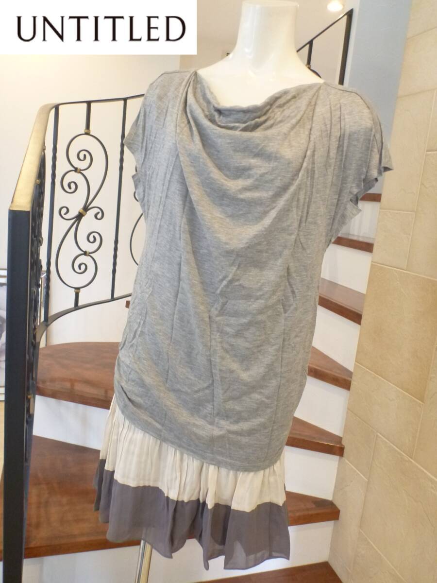 超美品 UNTITLED アンタイトル ★グレー×アイボリー 半袖 異素材 ワンピース 2 M相当
