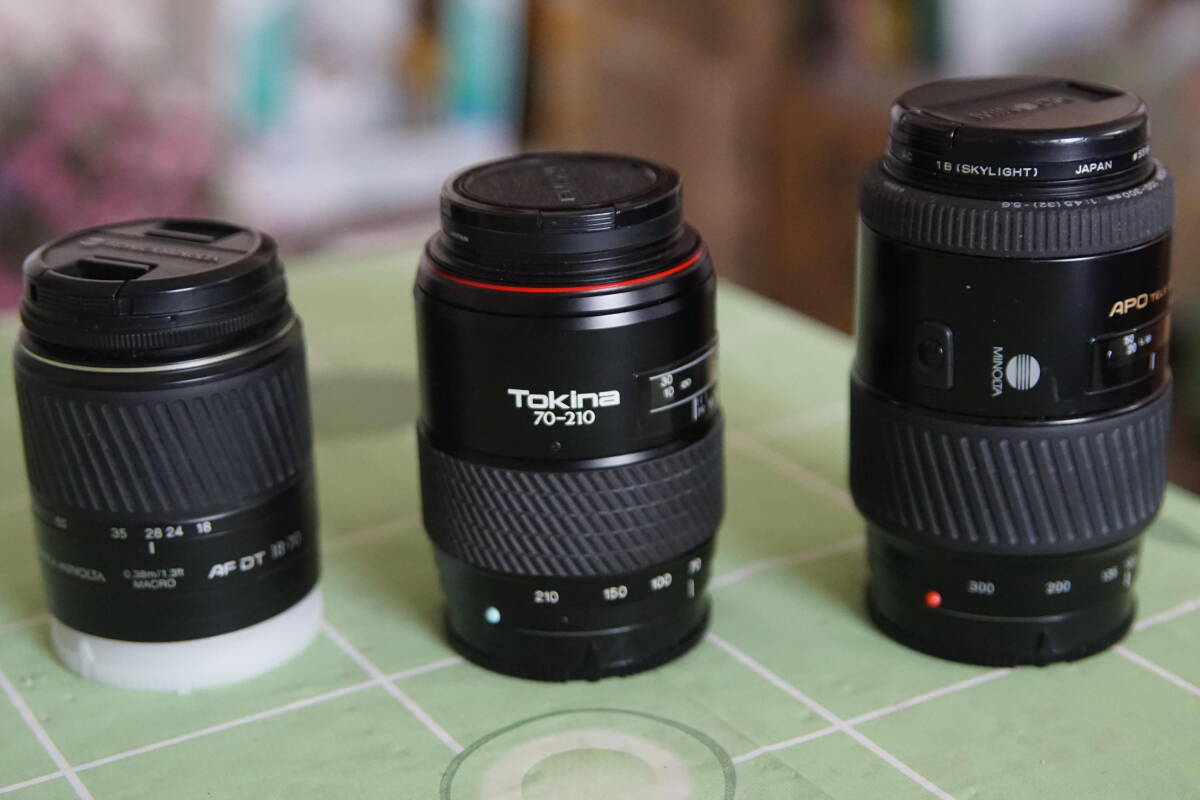 三本のズームレンズが付きます。標準ズームのコニカミノルタDT18-70mmレンズはSONY