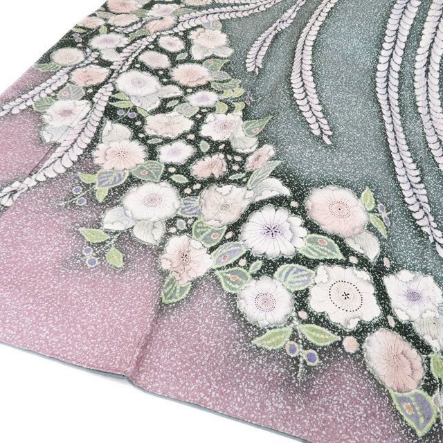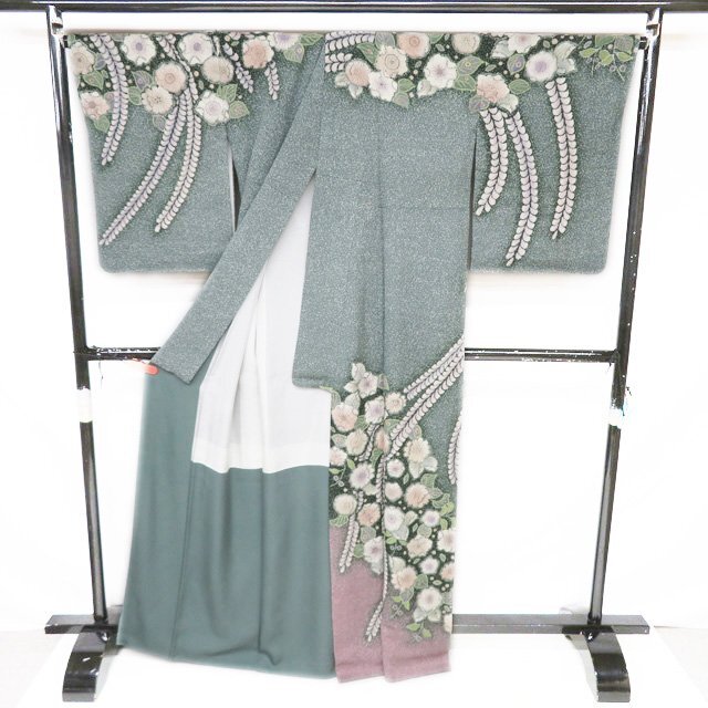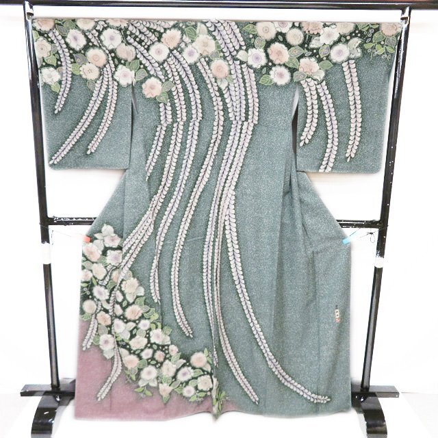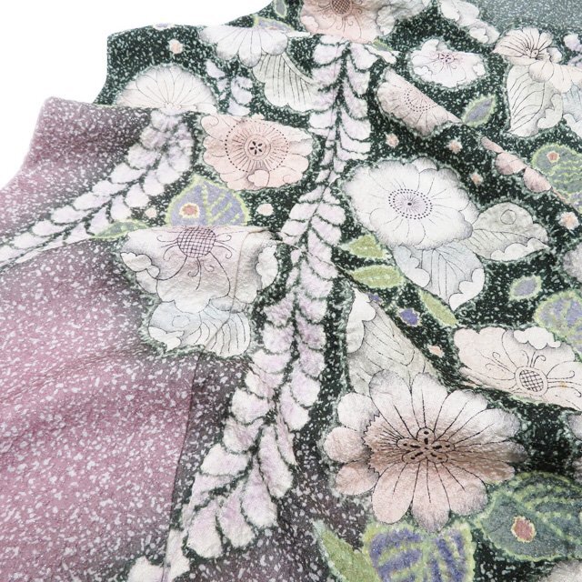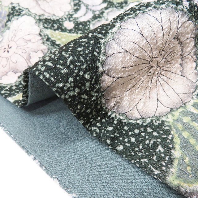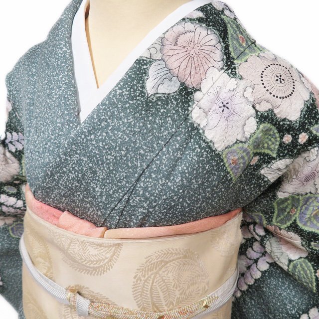 丈169.5cm(+4) 裄70cm(+2) 袖丈58cm(+3) 前幅25cm 後幅30cm ※サイズのお直し、承ります。 (身丈のみ、身幅のみのお直しは承っておりません) ※身丈は肩から測っております。 ※()内は※()内の数字はお直しで直せる長さを示しています。お仕立て直しの場合は胴裏を付け替えるため、さらに長く直せる場合があります。詳しくはお問い合わせください。 単位:cm 素材 正絹 商品ランク C ●着用時期 10月~5月(+-2週間) ●着用シーン 披露宴、パーティー、お出掛け、式典など ●お色 深緑色 多色 銀通し ちらほらシミ・アクがございますが、まだまだご着用いただけるお品物です。 写真に写っている着物のみの販売で帯等の付属品はついておりません。 一部商品は実店舗・他サイトでも並行して販売しておりますので売り切れの際はご了承ください。 その他多数販売中 ogu | ||||||