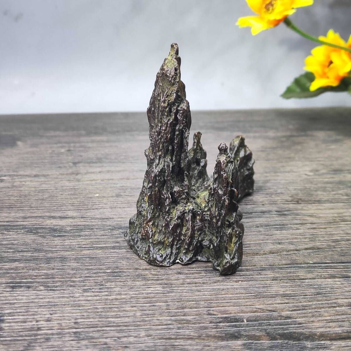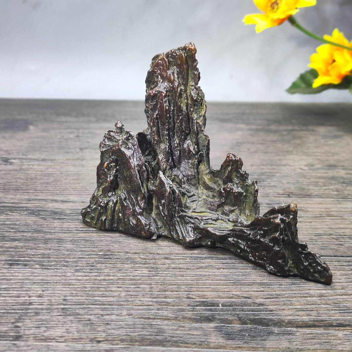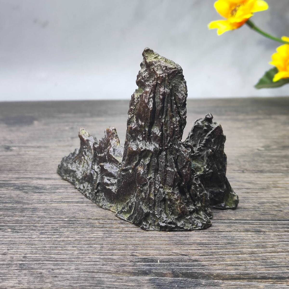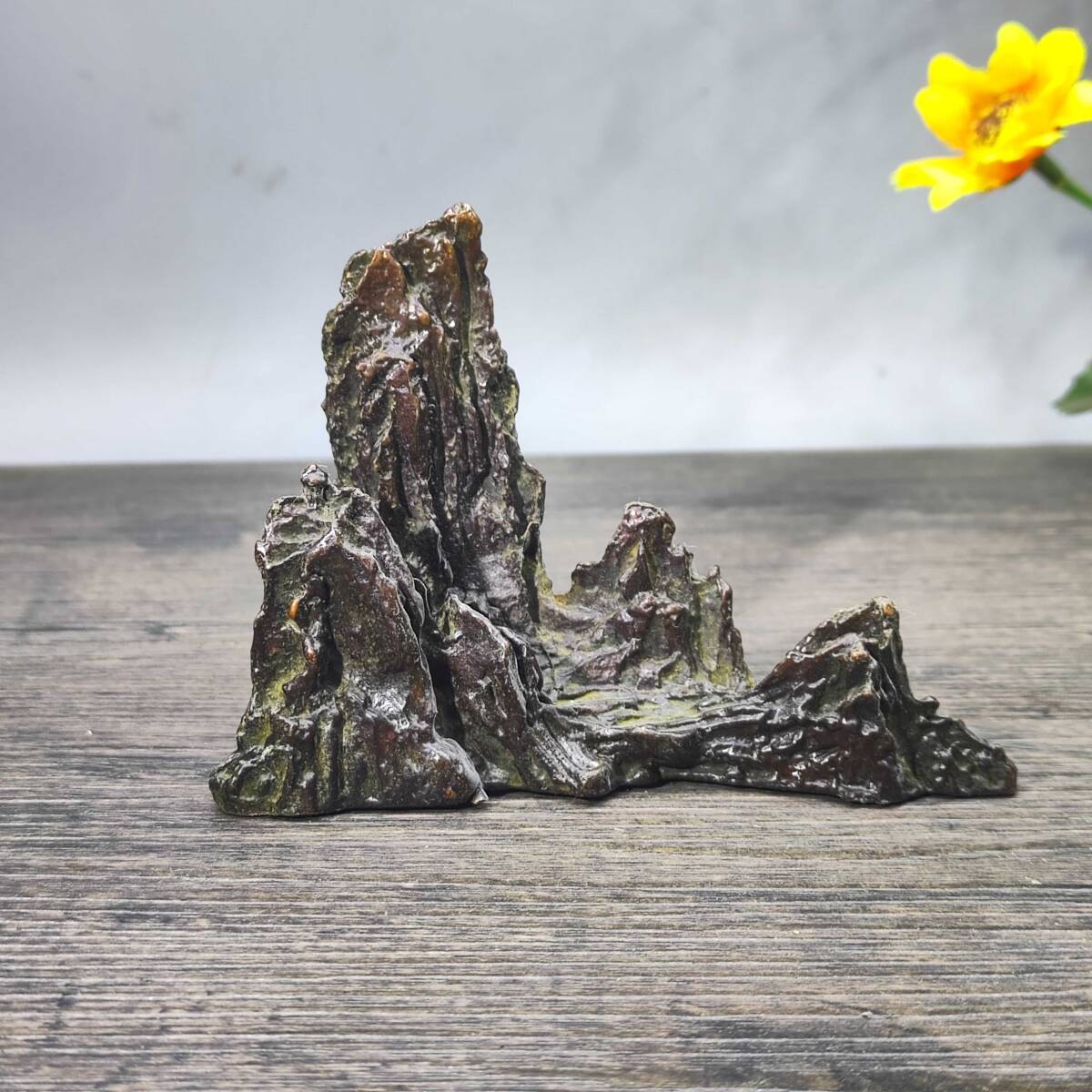 清 古銅彫 山筆架 文房具 書道品 置物 極細工 古賞物 古美味 東洋彫刻 時代物 骨董 中国古美術