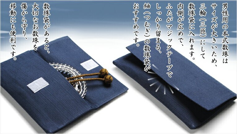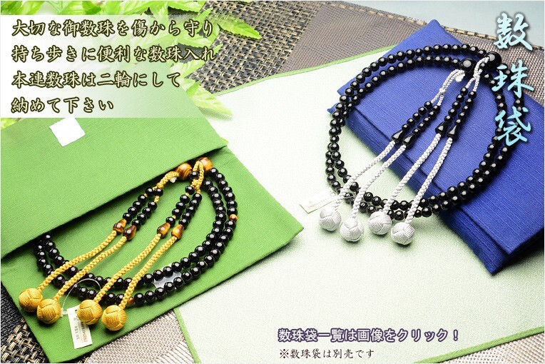 | 備考 | ※色味/模様/断層の入り方に差異がございます。 ※区切られた線のようなところは石を合わせた部分で傷ではございません。 ◆お数珠を傷から守り、持ち運びに便利な数珠袋もございます。詳細は数珠袋 |