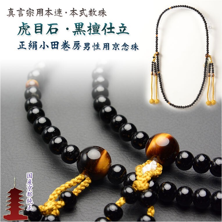 | 商品説明 | 京都純正:京都数珠製造卸組合正規製品(タグ付き) ◆真言宗用の正式な作りのお数珠、本連数珠(本連念珠・本式数珠) 108珠の主珠、親珠2、四天珠4、記子珠20、露珠2、浄名珠1の 合計137の珠と、4つの房で構成されています 艶のある黒檀は美しい光沢と、滑らかな手触りが特徴です 親玉と天珠には迫力のある茶褐色の虎目を使用しました 伝統的な艶のある黒檀と、天然石の組み合わせは威厳と高級感を感じさせます 親玉と天珠は趣のある縞模様が特徴の虎目石(タイガーアイ) 力強い虎の目の様な模様が際立つ美しい茶褐色の石です 虎目のパワーストーンとしての意味は 金運・仕事運・勝負運など全体運の向上 決断力・実行力がともない成功へ導くといわれています 房は丸くしっかりとまとめられ、型崩れのしにくい 小田巻梵天房を金茶色で仕立てました 京都の数珠職人が丁寧にお作りしました国産品です 京都数珠製造卸組合が認めた「京念珠」の証明タグ付 本式数珠用の豪華桐箱入りでお届けいたします ※数珠以外の数珠袋などは別売です。 京都の数珠職人がお作りした、永くご使用頂ける御数珠を是非ご検討下さいませ。 ※数珠以外の数珠袋・数珠入れは別売です。 |