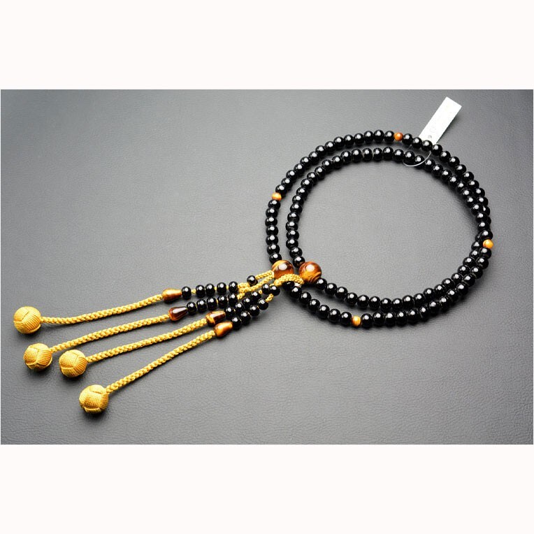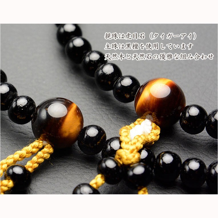 | サイズ | サイズ 親珠:虎目 径14mm 主珠:黒檀 径8mm 天珠:虎目 径5mm 浄名・記子 黒檀 径6mm 露珠:虎目石 径7mm |