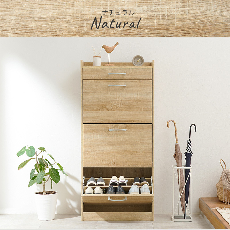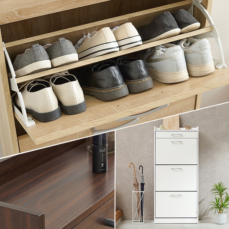引出し付きで靴のお手入れ道具や玄関小物を収納可能