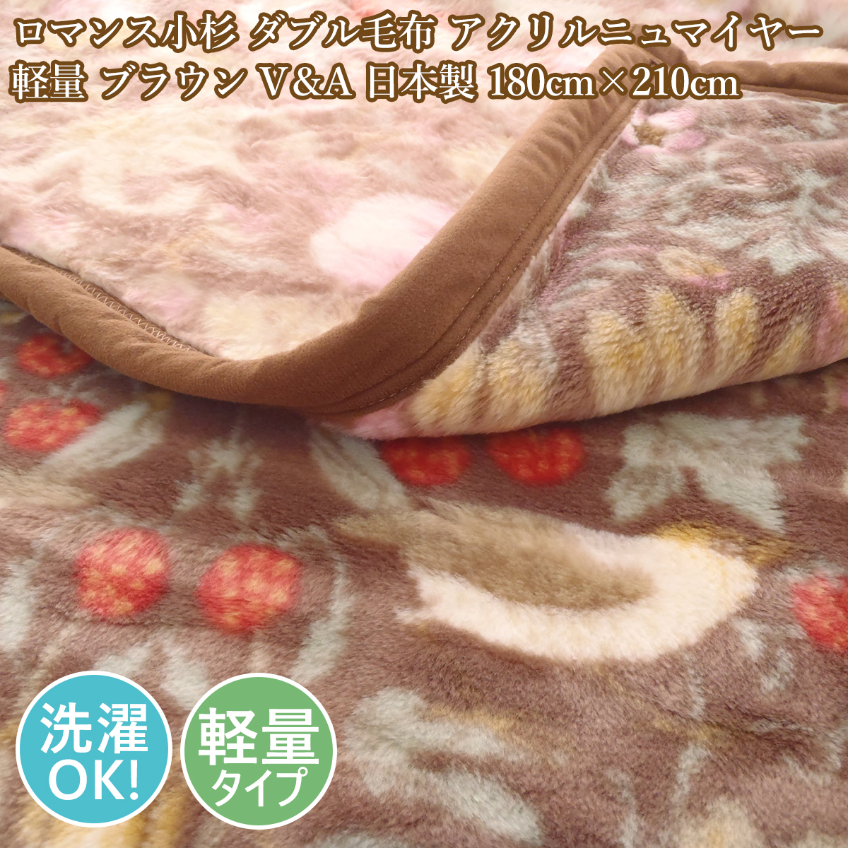 ロマンス小杉 ダブル毛布 アクリルニューマイヤー 軽量 ブラウン V&A 日本製 180cm×210cm
