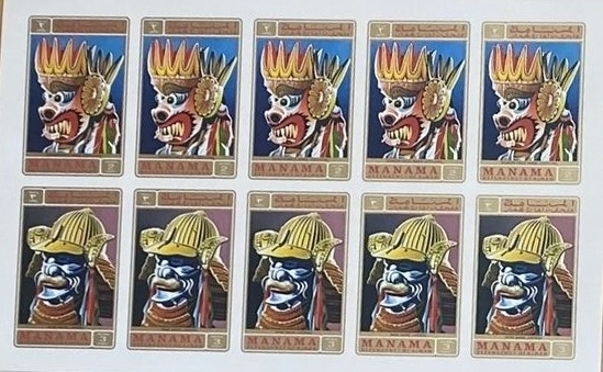 MANAMA切手『マスク』10枚シート A(日本武士) 無目打