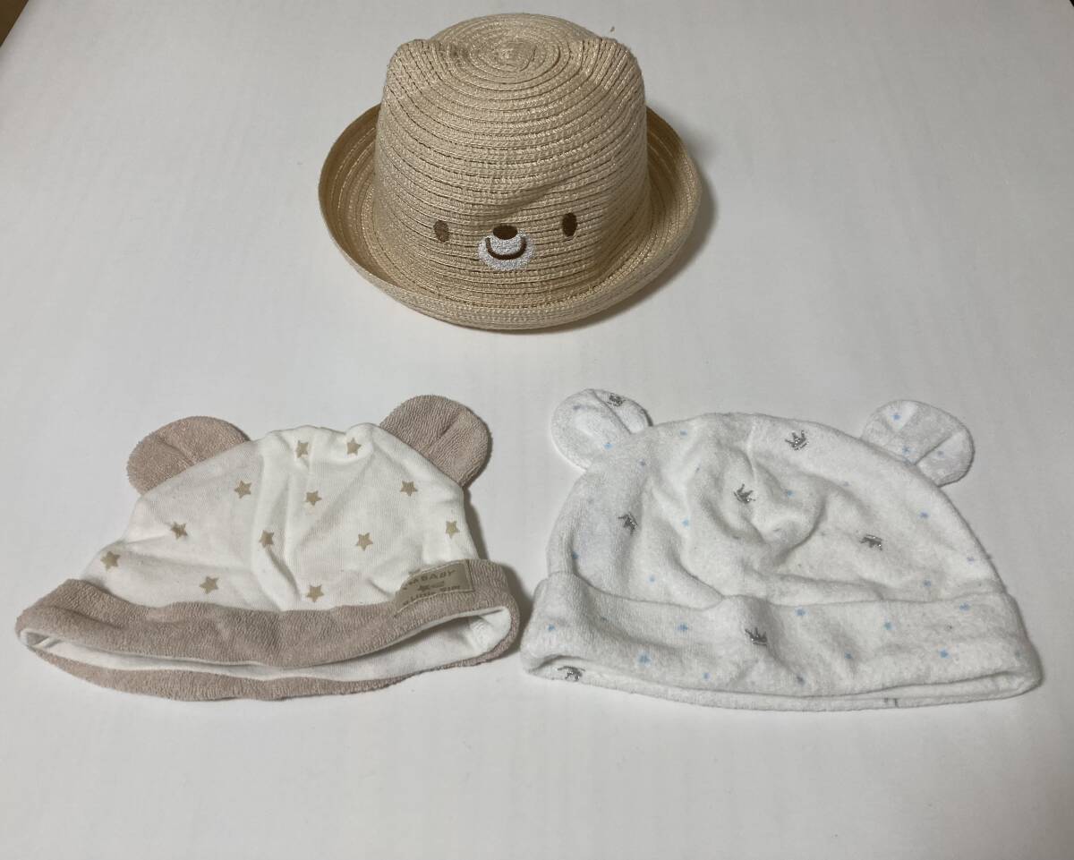 ・帽子のサイズは麦わら帽子が44cmで残り2つは表記がありません。