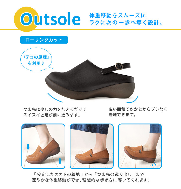 柔らかいインソールは、足にかかる衝撃を吸収してくれるから疲れにくい!