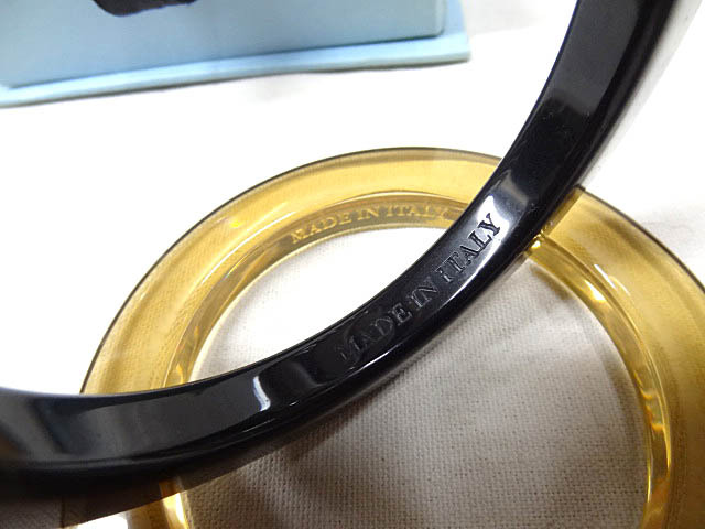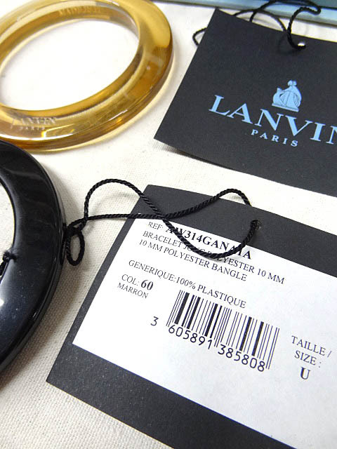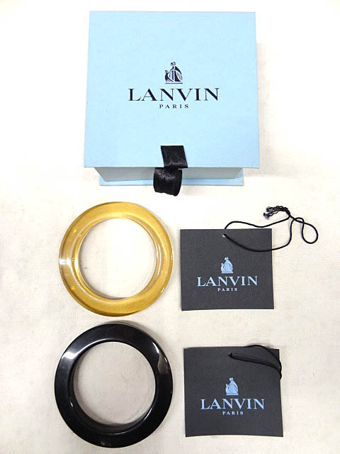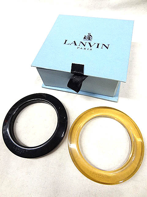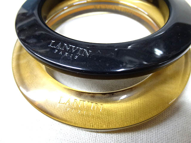 LANVIN ランバン パリ イタリア製 クリア 透明 カラー バングル 2個 セット べっこう 鼈甲 黒 色 アクセサリー ブレスレット カフ ブランド
