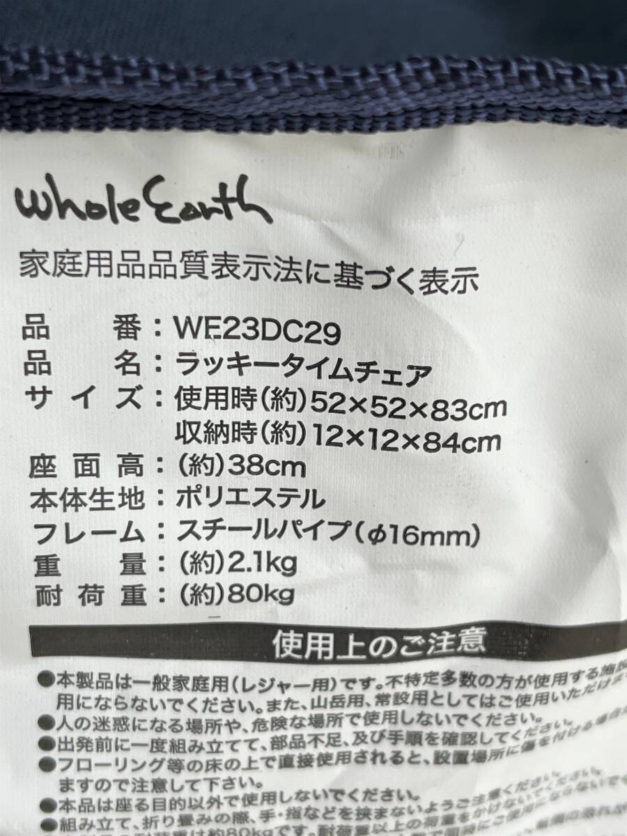 K-297★Whole Earth★ホールアース ラッキータイムチェア ネイビー キャンプ用品 未使用保管品