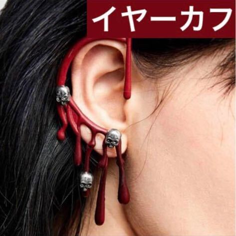 レディース ガール アクセ アクセサリー イヤリング カフ イヤーカフ かっこいい バンギャ 病み 病み可愛い 黒 ゴスロリ 地雷 地雷系 ドクロ スカル ガイコツ 骸骨 血 ハロウィン