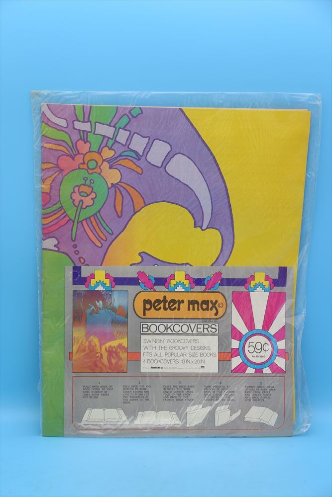 1970年代ピーターマックスのブックカバー 4枚入りです。1960年代から1970年代に人気を博したアメリカのポップアートアーティストです。ポスターやアルバムカバー、広告などで幅広く使用され、ポップカルチャーの象徴として名を馳せました。