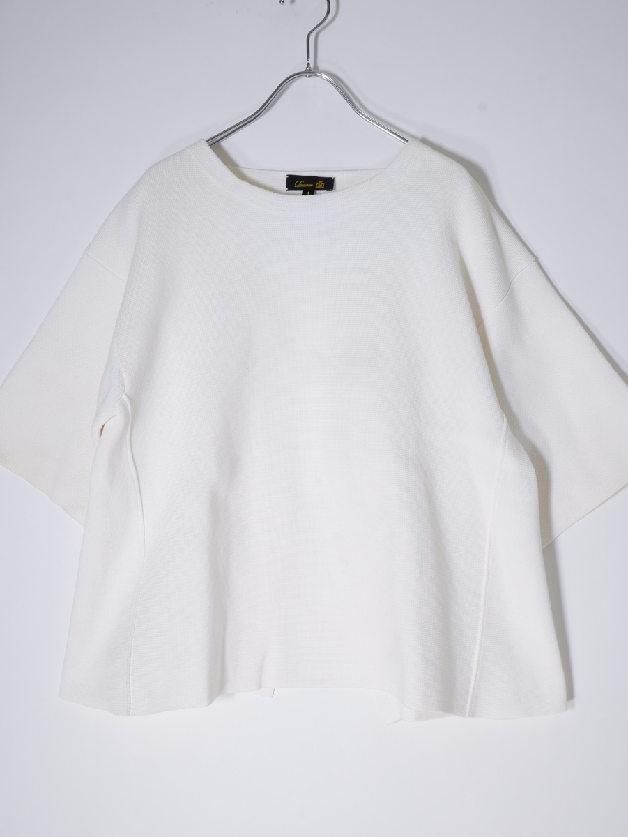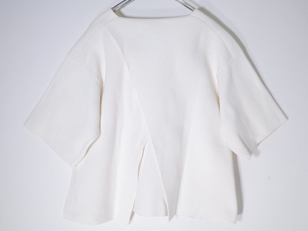 素材感厚手のしっかりしたコットンニット地 透け感なし 裏地なし ストレッチなし 開閉デザインなし 付属品(取り外し可)なし 商品情報バックがカシュクール調にレイヤードした、フレアシルエットのプルオーバートップス。 |