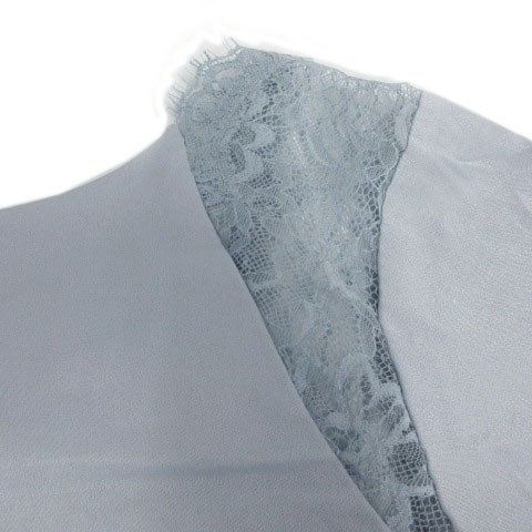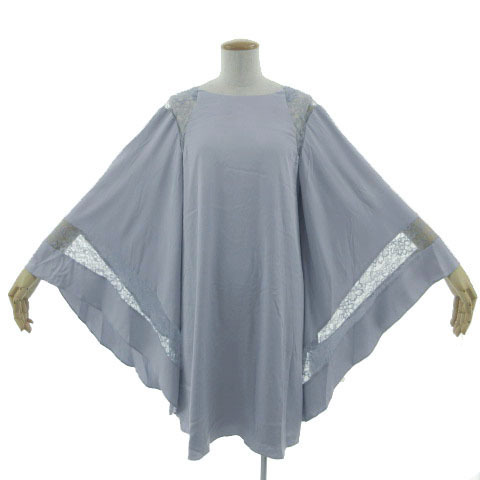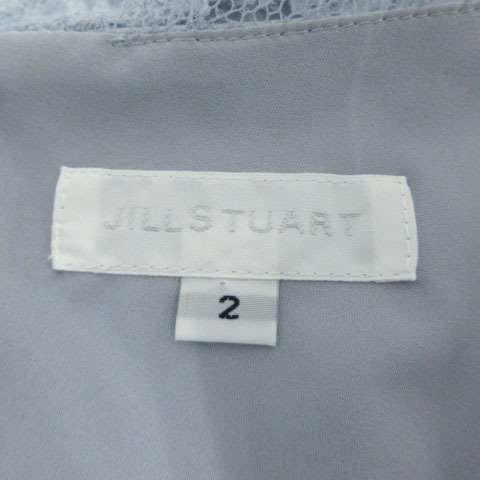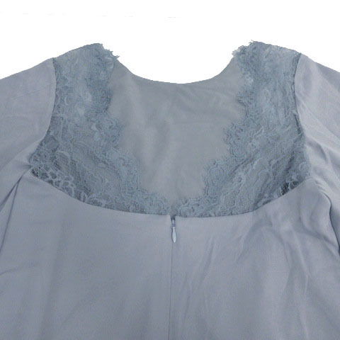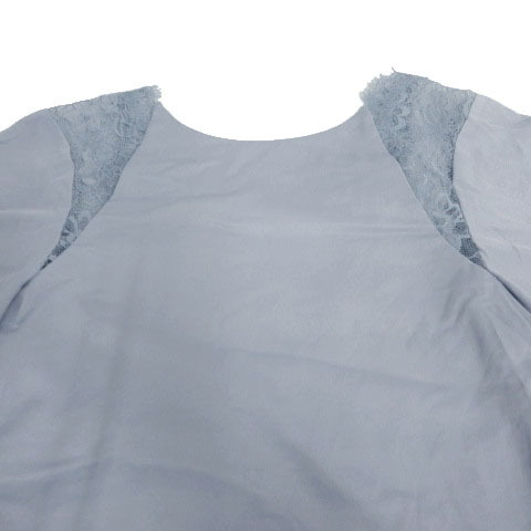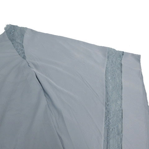 ジルスチュアート カットソー チュニック丈 デコルテスカラップレース 七分袖 フレアスリーブ Vバック 日本製 ブルー系 ブルーグレー 2