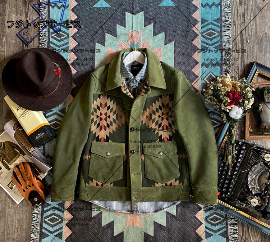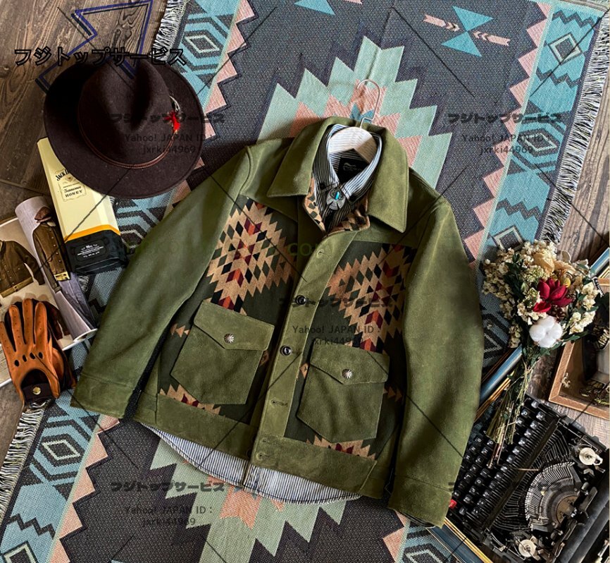 特売! ナバホ柄 本革 子牛革 カーフハイド レザージャケット ライダース ジャケット カウハイド メンズファッション 牛革 革ジャン S~5XL