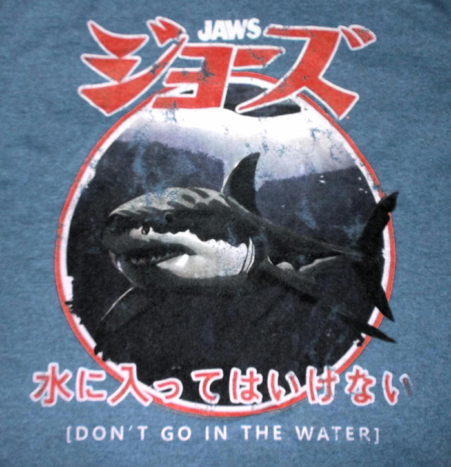 | JAWS : JAPANESE WARNING MENS TEE 正規品 スティーヴン・スピルバーグの名前を一般に浸透させた映画のひとつ「JAWS」 のオフィシャルTシャツ「JAWS : JAPANESE WARNING MENS TEE 」です。 平和なビーチを襲う巨大人食いサメ(ホオジロザメ)の恐怖と、それに立ち向う人々を描いた 動物パニック映画の金字塔!! ジョーズのグラフィックを中心に、カタカナでインパクトのあるロゴと、 キャッチコピーの日本語ロゴの海外受けなデザイン! Color: PACIFIC BLUE HEATHER 正規品 Mサイズ 170cm~175cm位の方に良いかと思われます。肩幅41cm, 着丈72cm, 身幅 52cm 新品・正規品 郵メール便送料¥250(代引き不可・紛失補償なし) THRASHER、Sailor Jerry等~アメキャラ・企業ロゴ等ライセンスアイテム、ラットフィンク関連品、レゲエ、バンドTシャツ等取り扱っております。 ** 他にも色々出品中です。 CWHM IWts CWHM IWts | |||||||