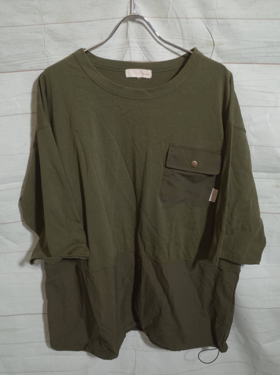 レディース pk601 LOGOS DAYS ロゴス デイズ 異素材切替 半袖Tシャツ 4L カーキ系 大きいサイズ