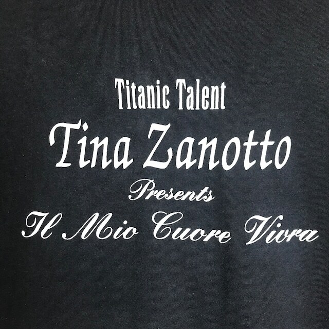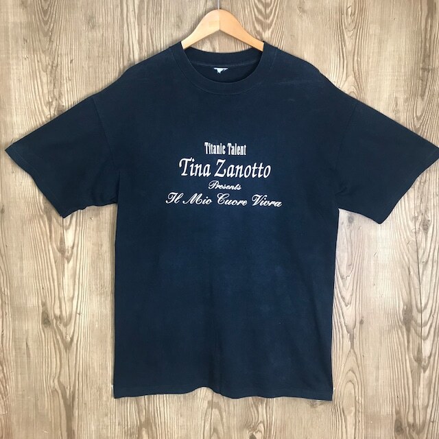 90s VINTAGE TITANIC TALENT TINA ZANOTTO プリント 半袖 T-sh Tシャツ サイズ メンズ L位 シングルステッチ 90年代 タイタニック ムービー 映画 ミュージカル ビンテージ ヴィンテージ ストリート アメカジ 古着 s24071407