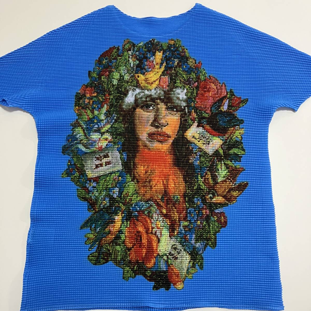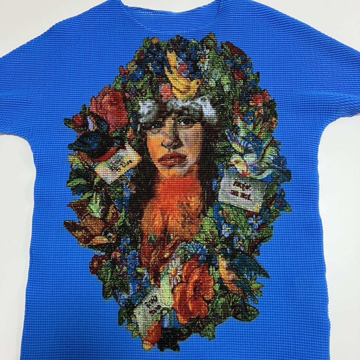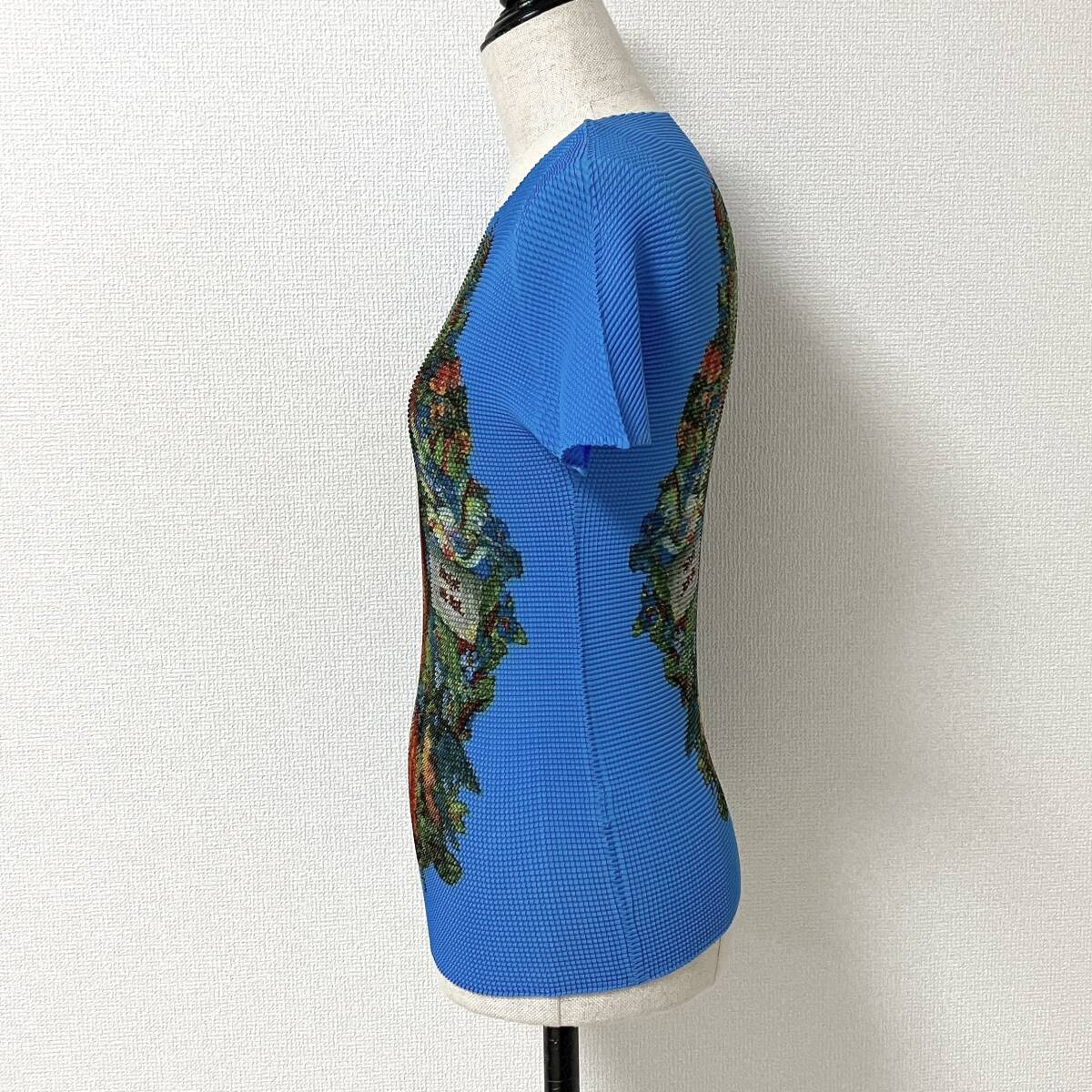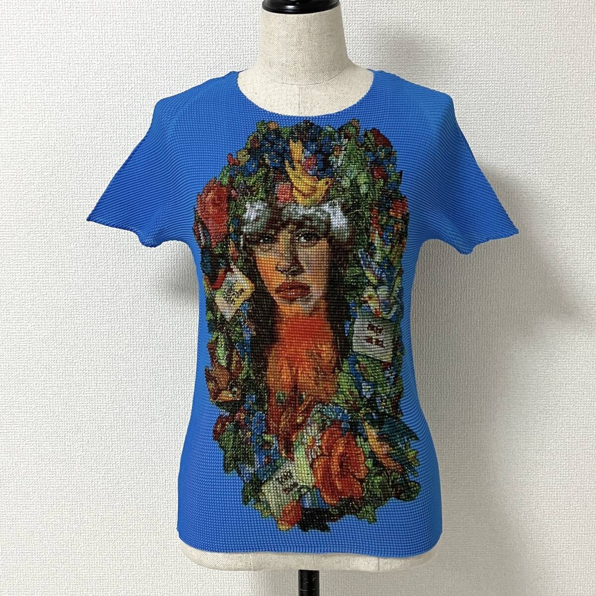 ISSEY MIYAKE PLEATS (T.) フェイス プリント プリーツ 半袖 カットソー ブルー