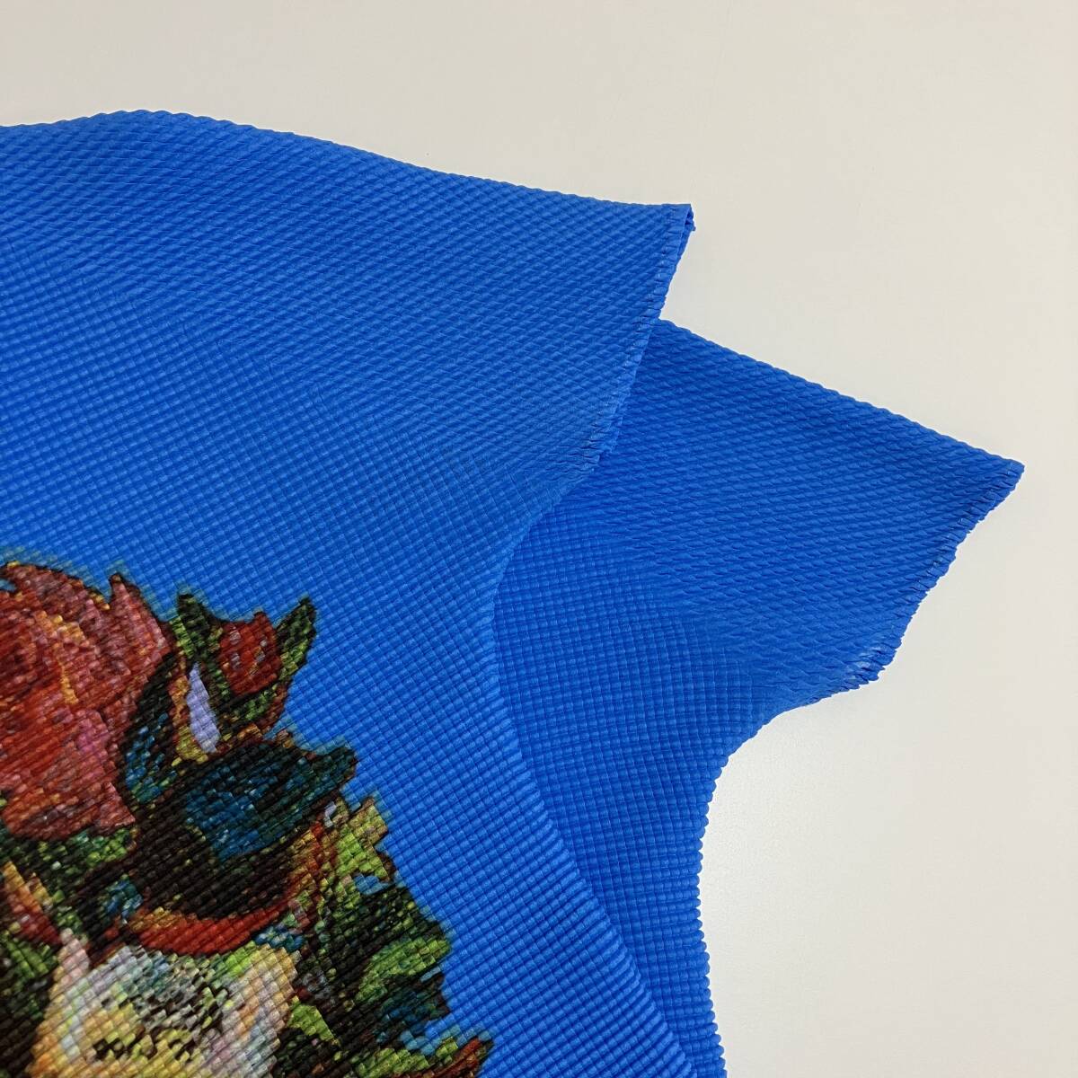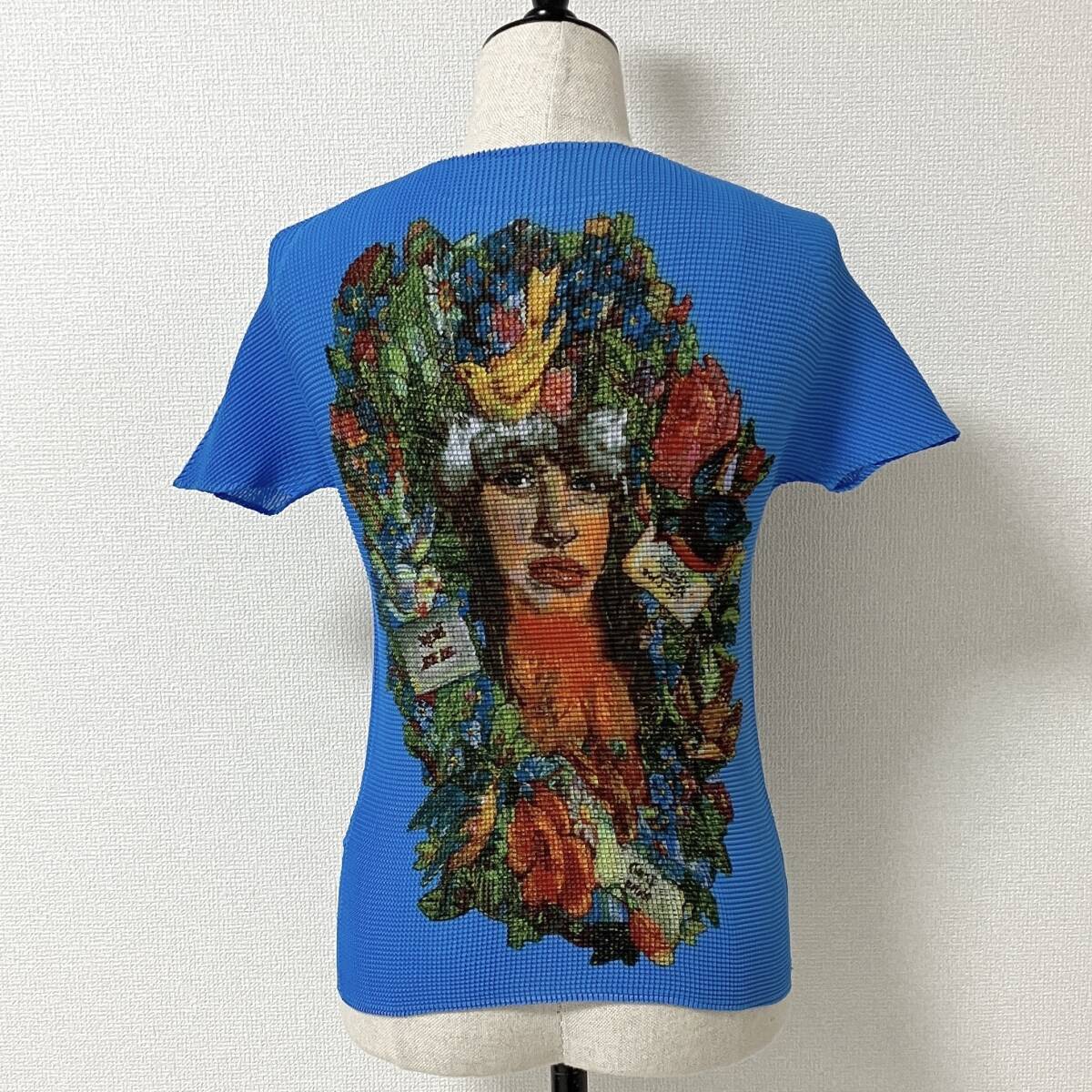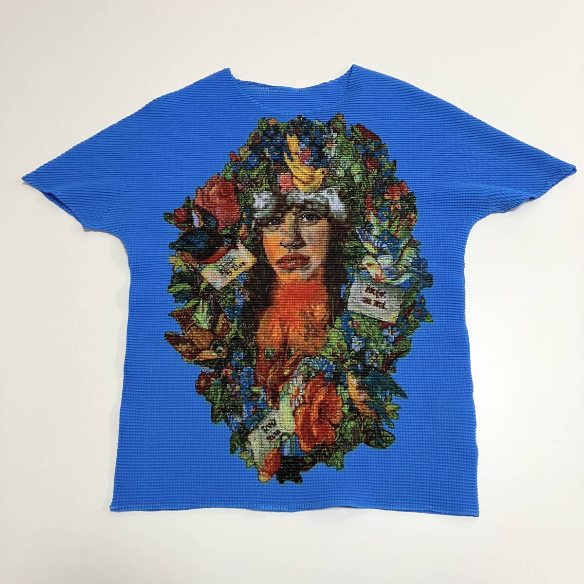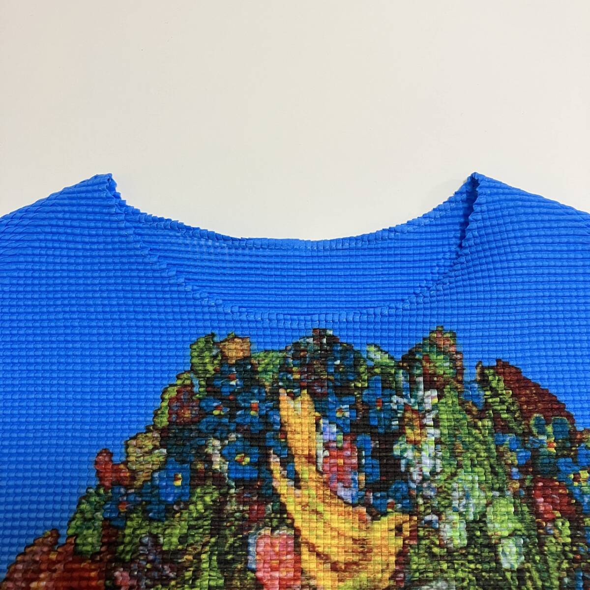 ISSEY MIYAKE PLEATS (T.) フェイス プリント プリーツ 半袖 カットソー ブルー
