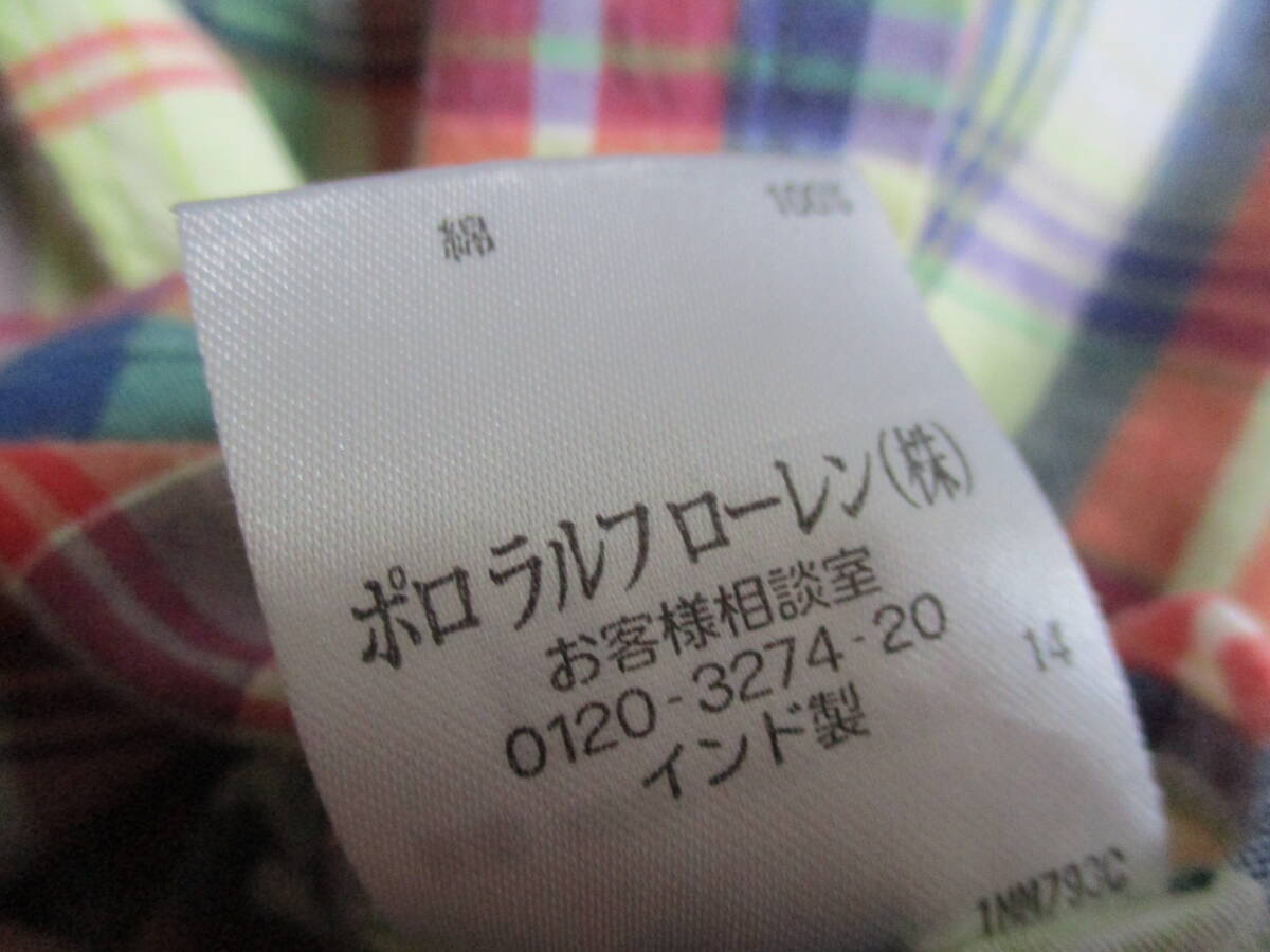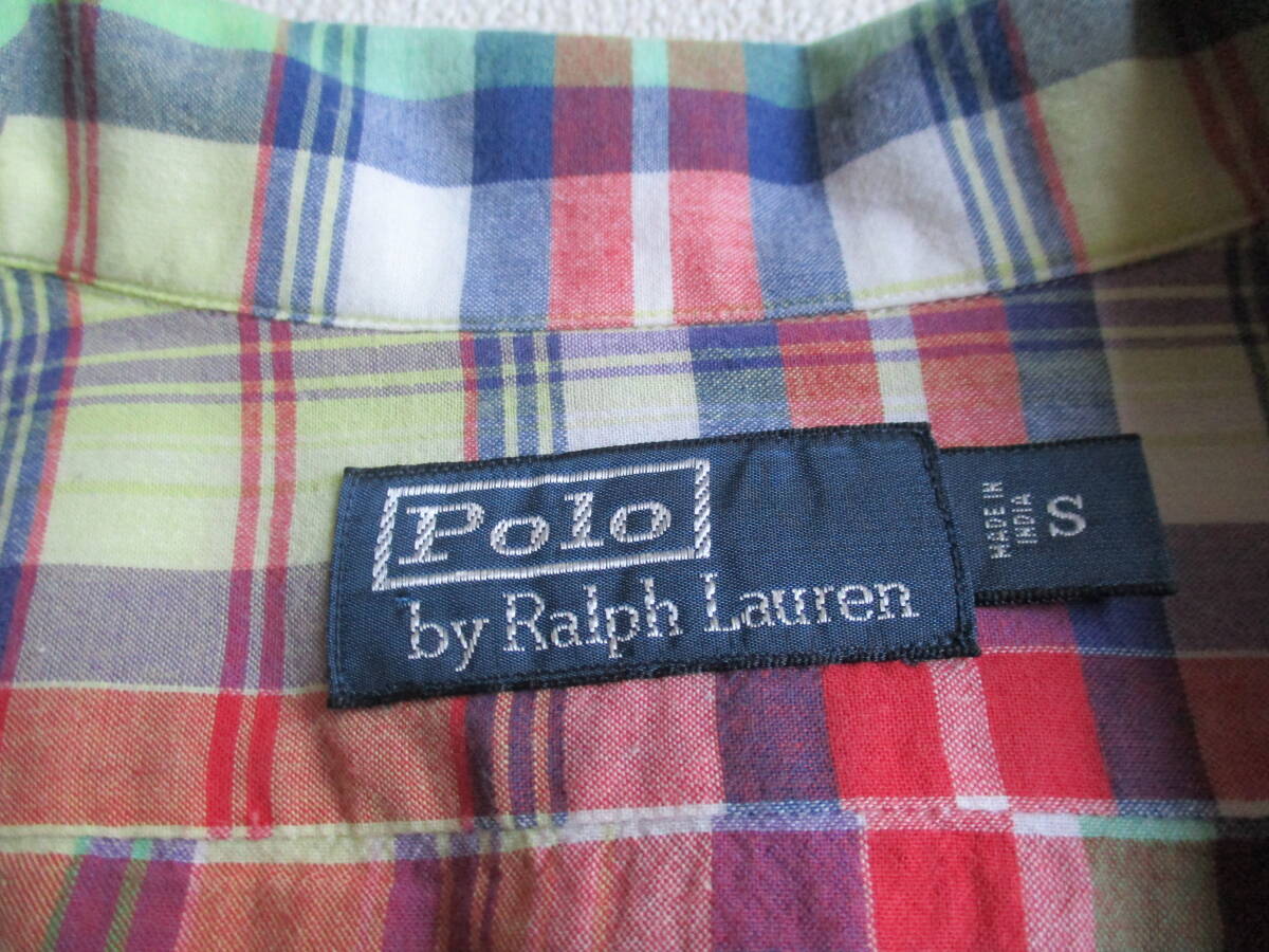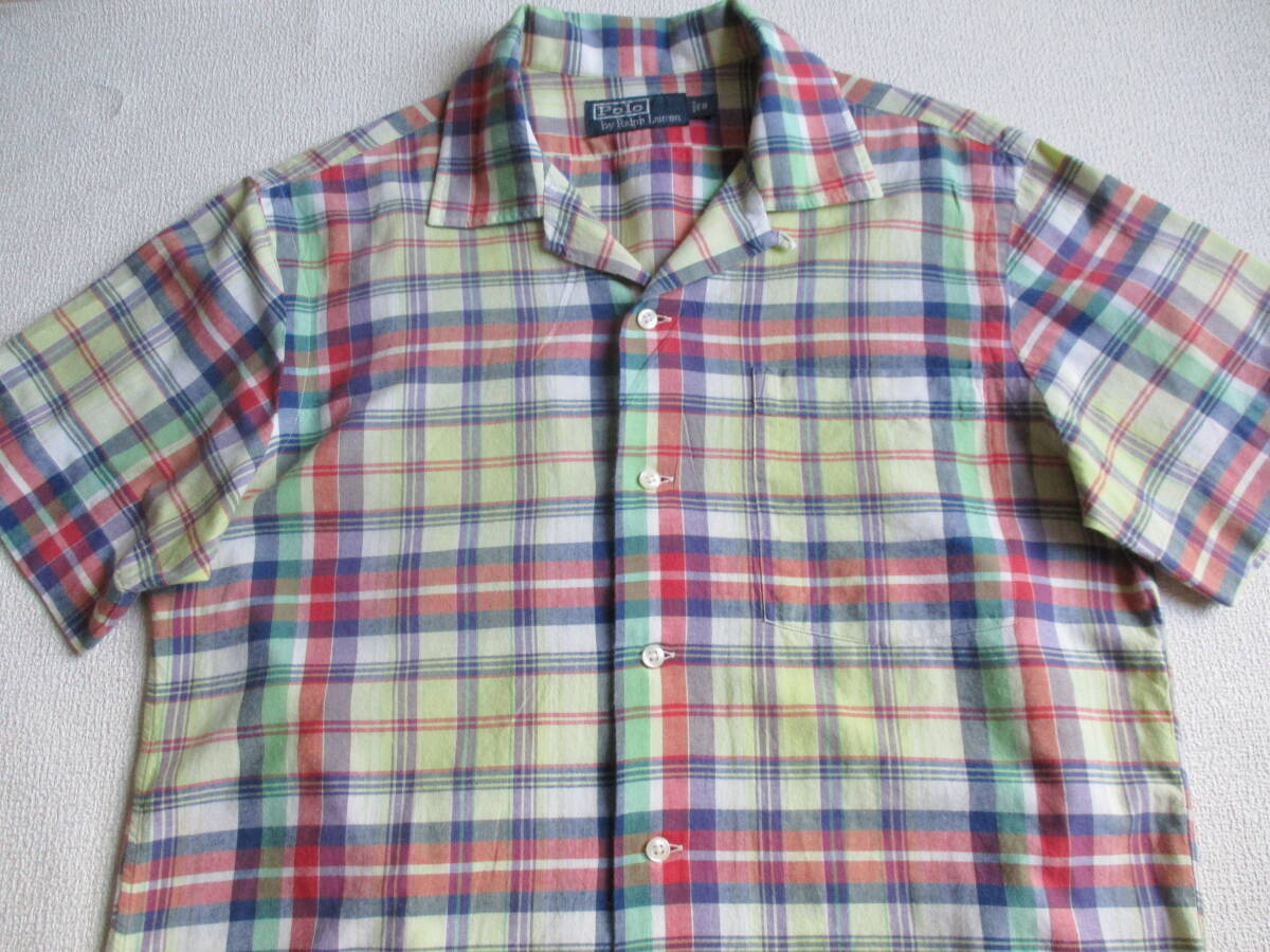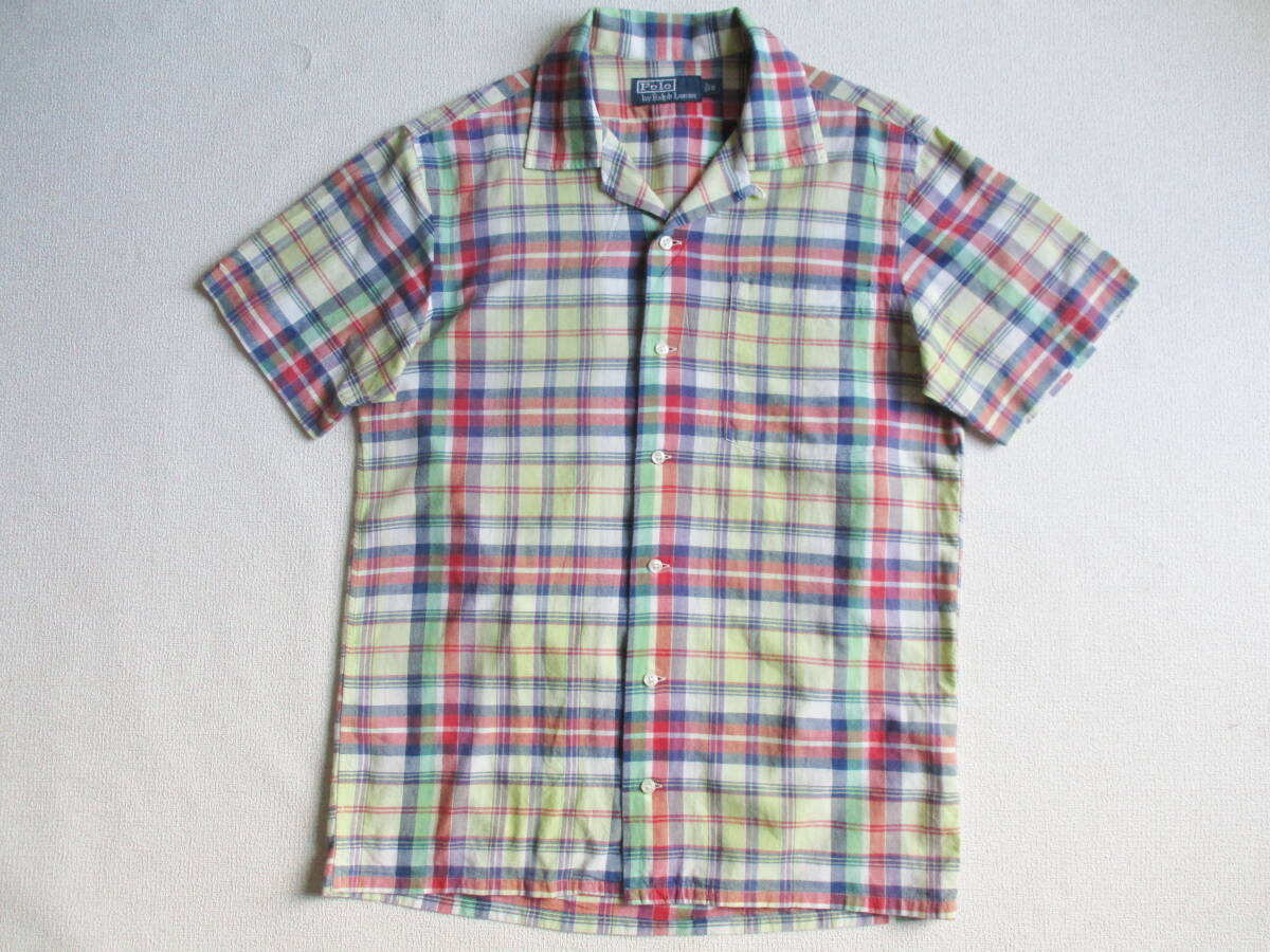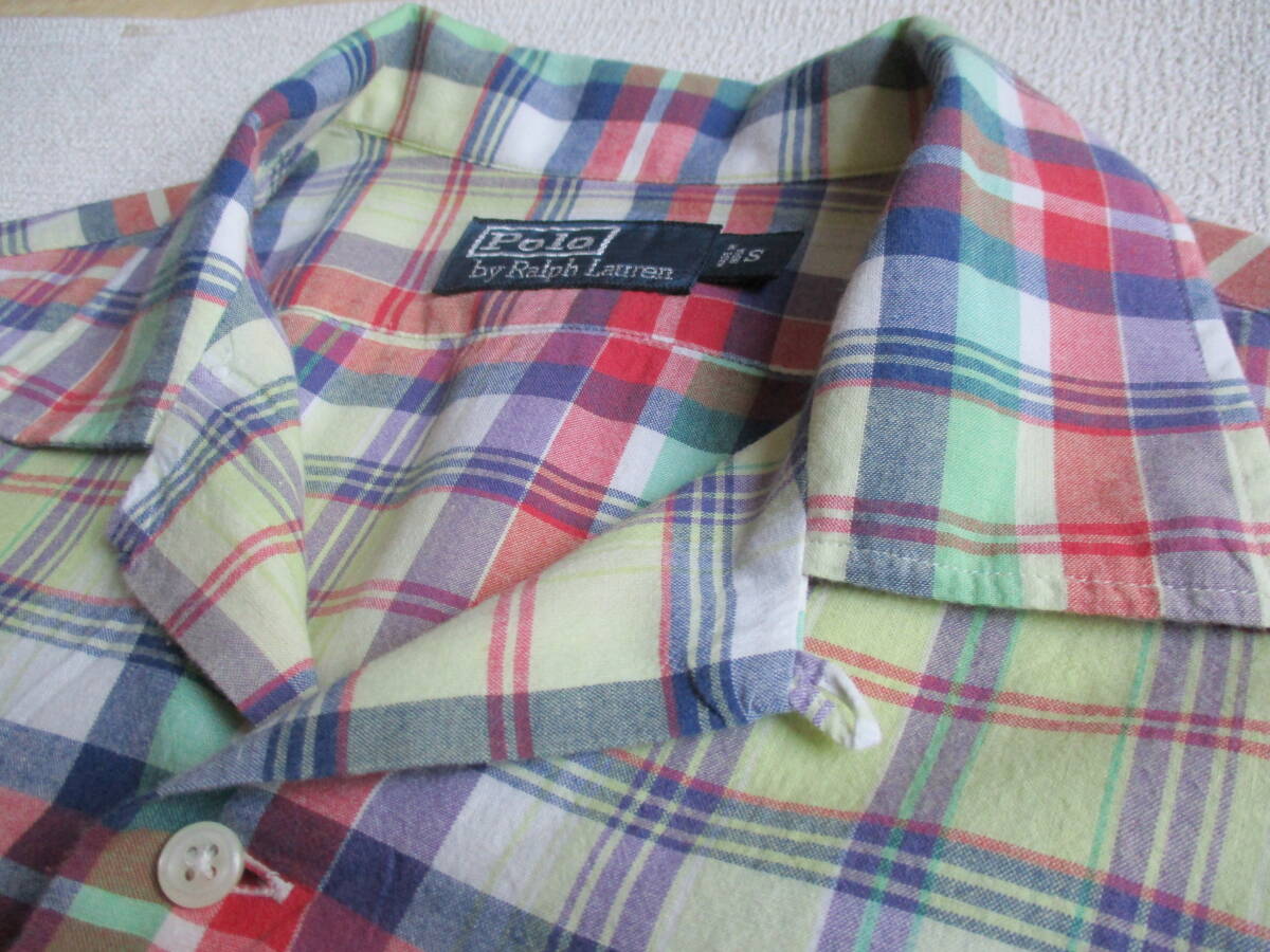 美品★ S ポロラルフローレン★ 半袖開襟チェックシャツ★ かすれマルチカラー オープンカラー
