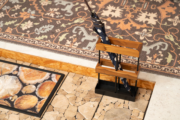 ●温かみのあるチーク材とスタイリッシュなアイアンを組み合わせたアンブレラスタンド。