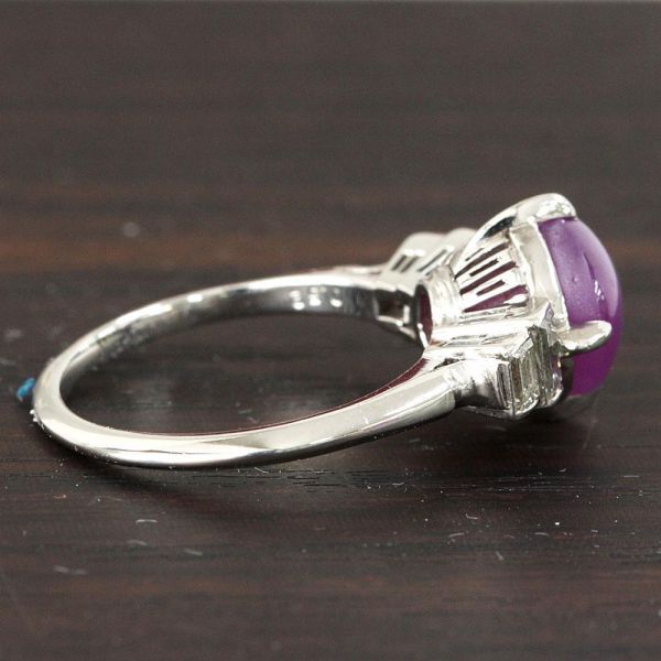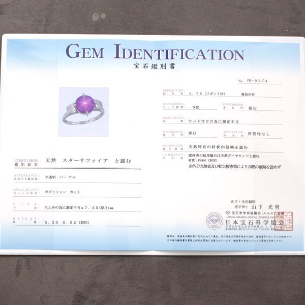 【製造大卸☆最安値】非加熱 特品!5.25ct 天然 パープル スターサファイア 0.52ct 天然 ダイヤモンド プラチナ PT900 リング 【鑑別書付】