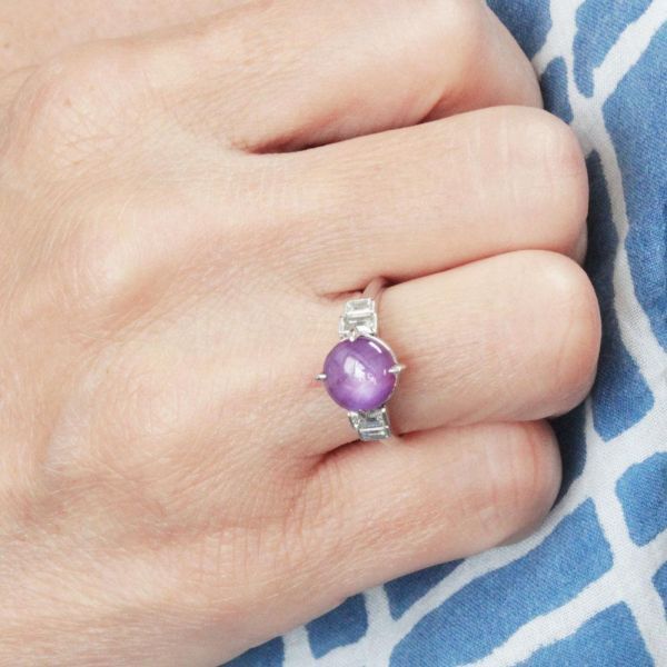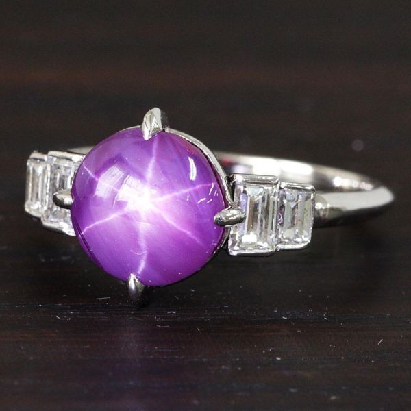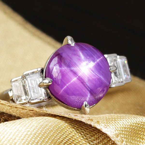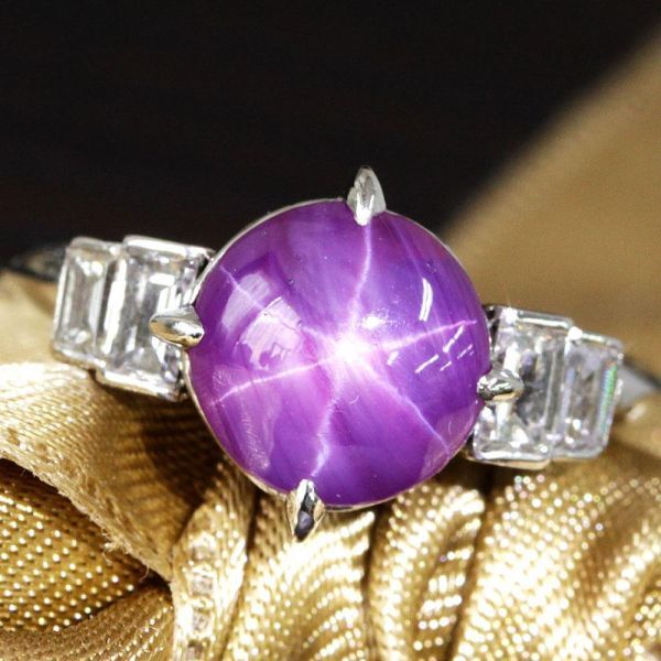 最高品質の非加熱パープルサファイアに、幻想的な美しさを抱く6条のラインは圧巻の美しさです。