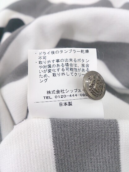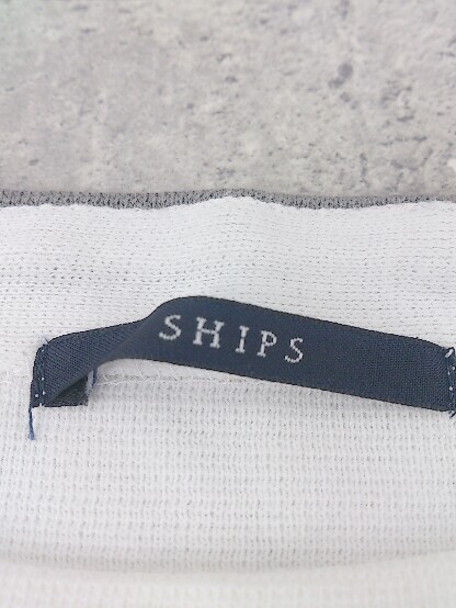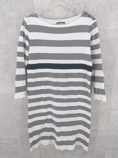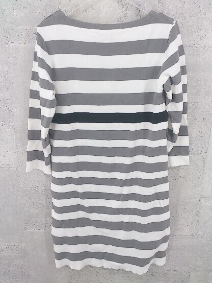 ◇ SHIPS シップス コットン ニット ボーダー 八分袖 膝丈 ワンピース ホワイト グレー レディース